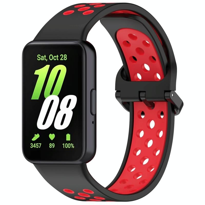 Για Samsung Galaxy Fit 3 Δύο χρώματα αναπνεύσιμο λουράκι σιλικόνης ρολόι (μαύρο κόκκινο)
