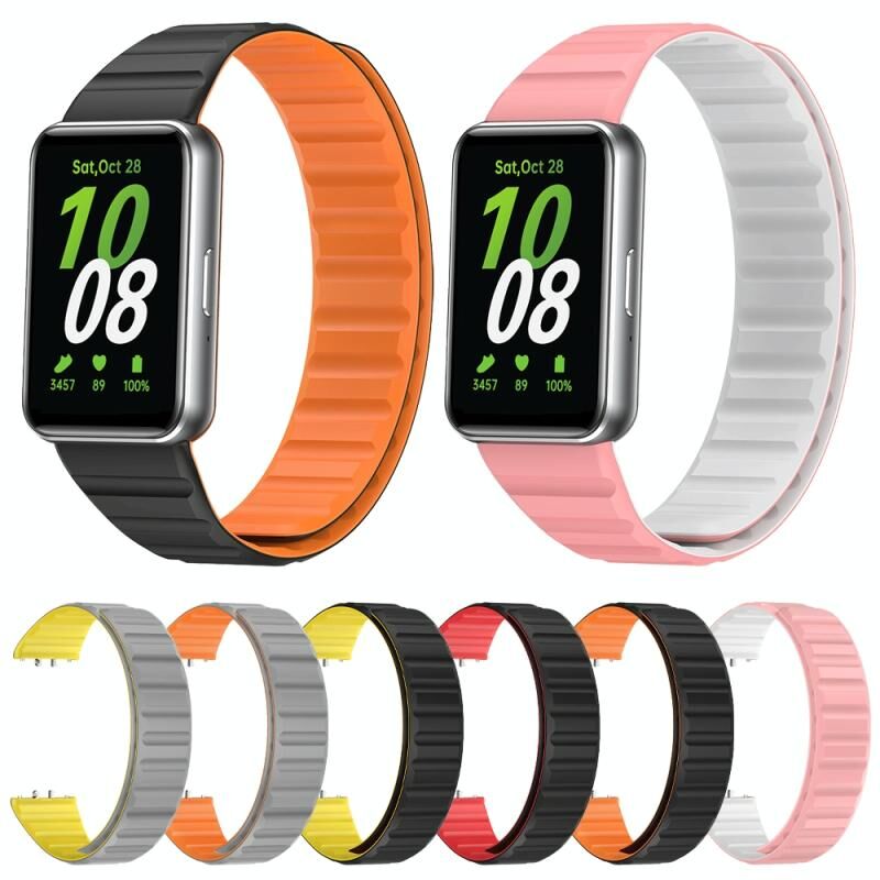 For Samsung Galaxy Fit 3 Two Color Magnetic Silicone Watch Band(Black Red)