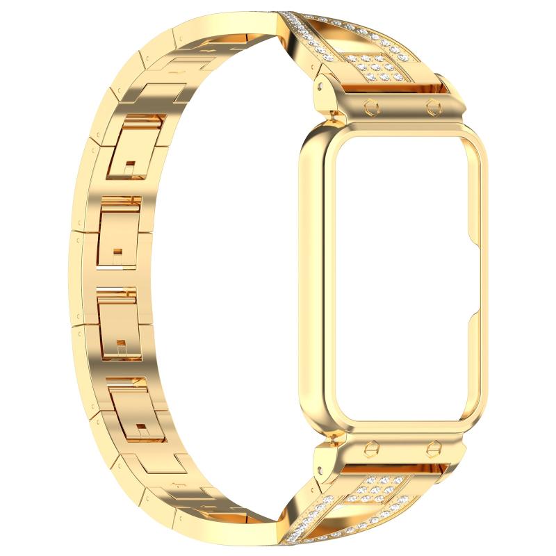 For Samsung Galaxy Fit 3 X Shaped Dual Row Diamond Metal Frame Watch Band(Gold)