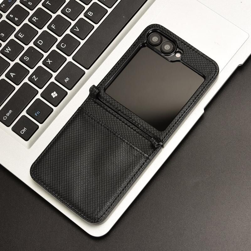 Για Samsung Galaxy Flip6 Diamond Texture δέρμα τηλέφωνο υπόθεση (μαύρο)