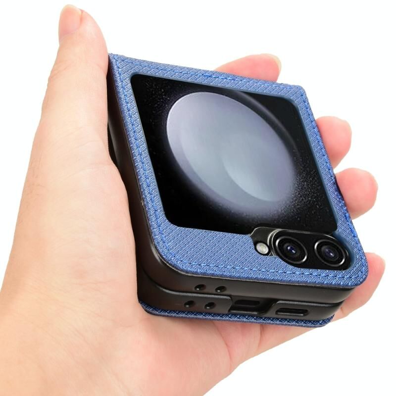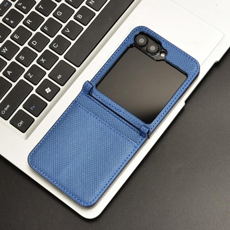 Για το Samsung Galaxy Flip6 Diamond Texture Δερμάτινη θήκη τηλεφώνου (μπλε)