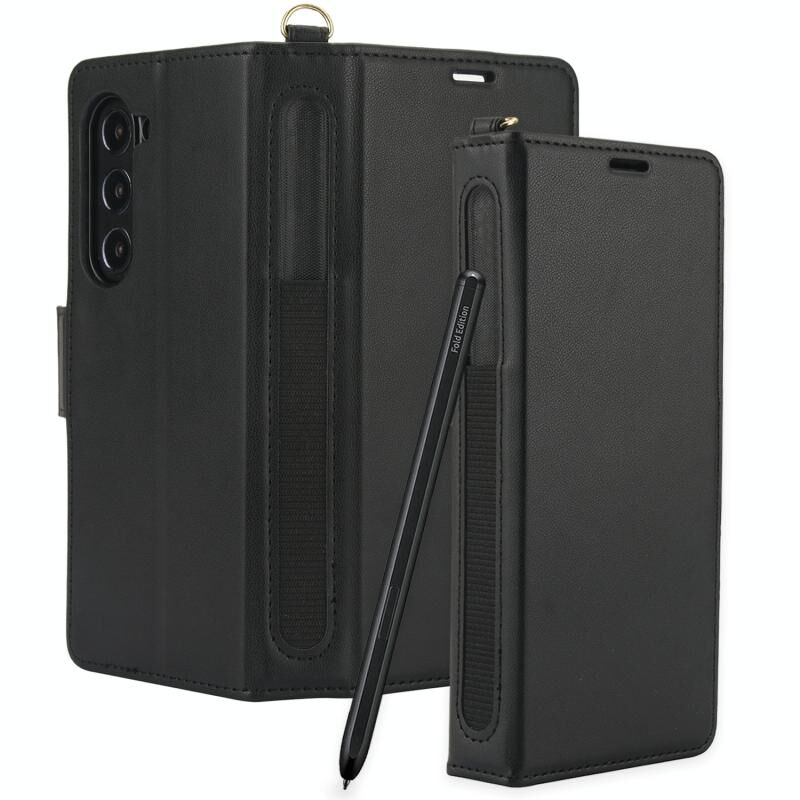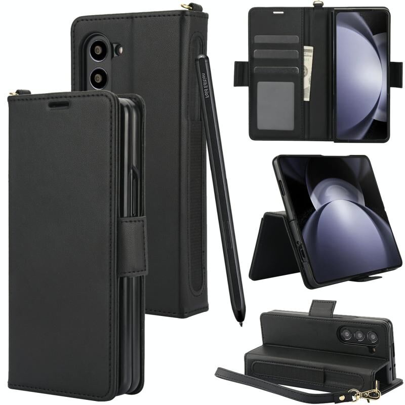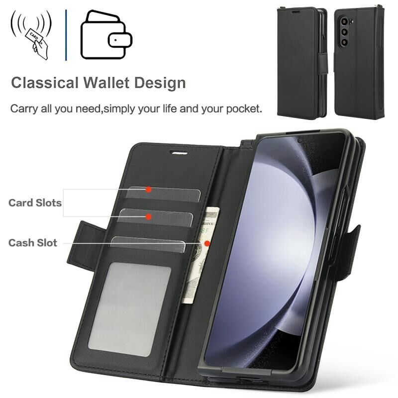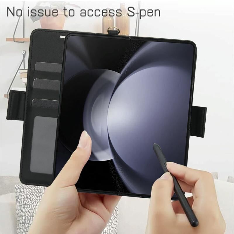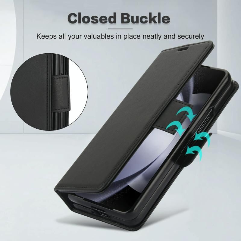 Για Samsung Galaxy Fold5 5G Side Πόρπη Δερμάτινη θήκη τηλεφώνου (Μαύρο)