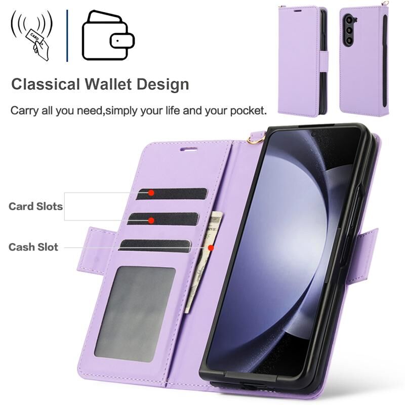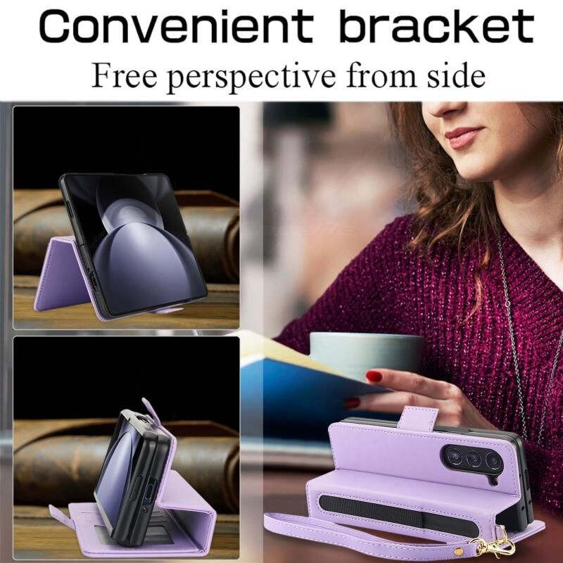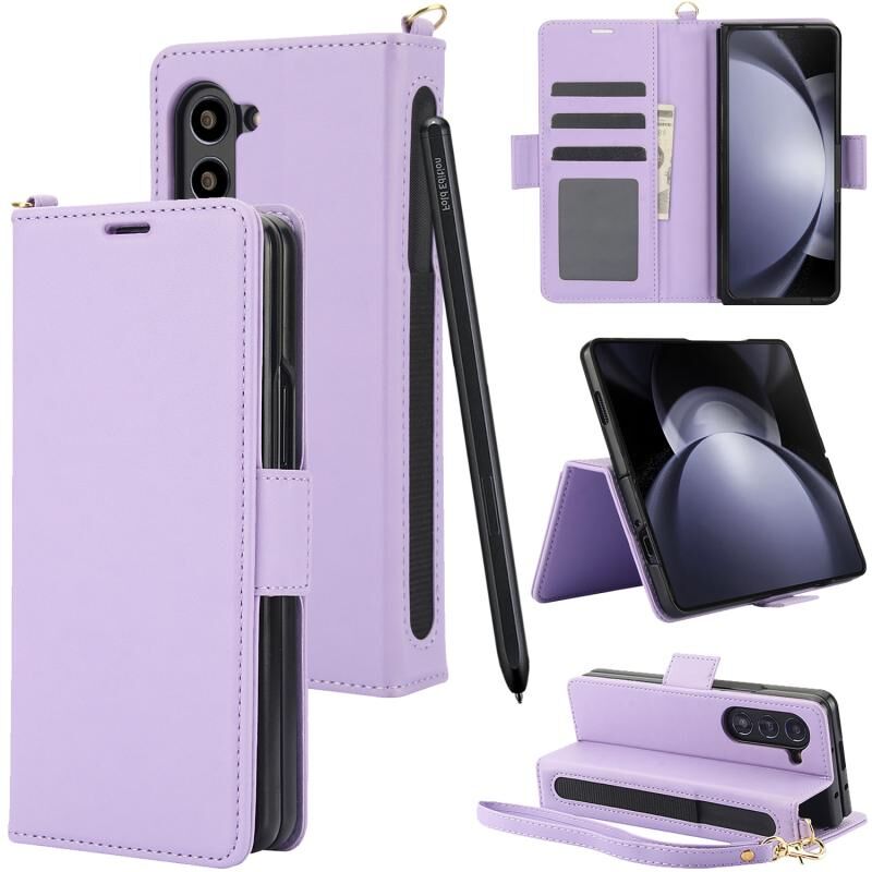 Για Samsung Galaxy Fold5 5G Side Πόρπη δερμάτινη θήκη τηλεφώνου (ανοιχτό μοβ)