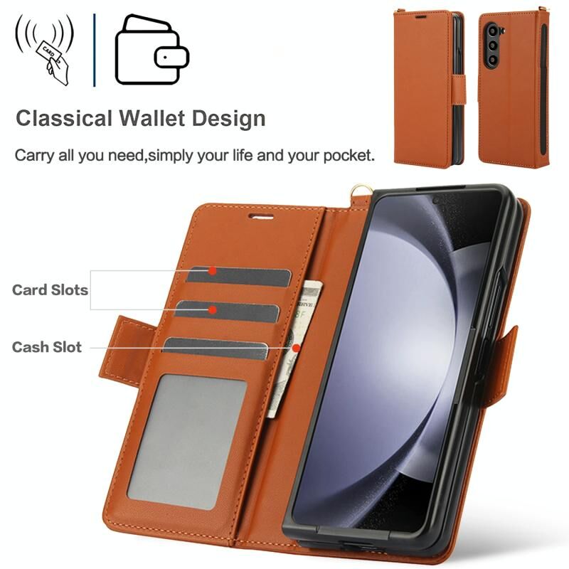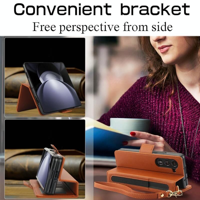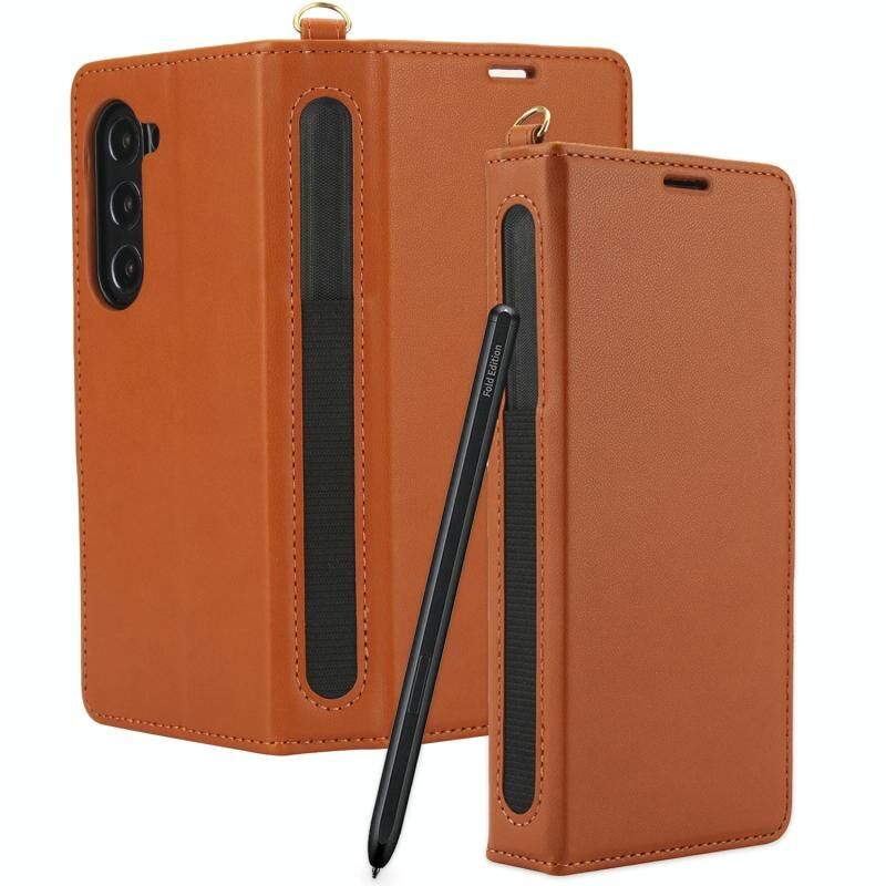 Για Samsung Galaxy Fold6 5G Side Πόρπη δερμάτινη θήκη τηλεφώνου (καφέ)