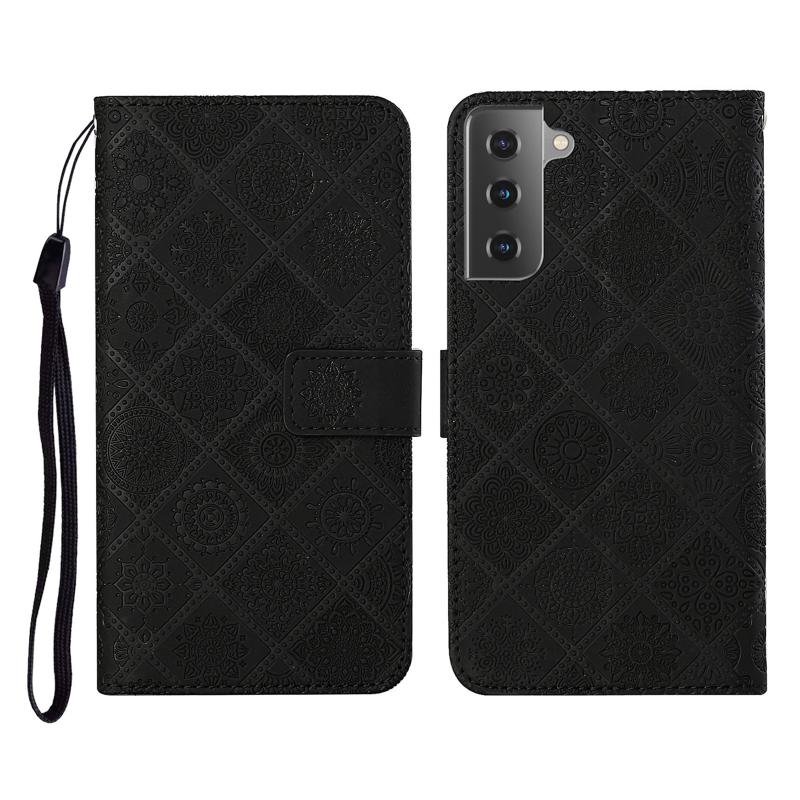 For Samsung Galaxy Galaxy S21 5G Ethnic Style Embossed Pattern Horizontal Flip Leather Case with Holder & Card Slots & Wallet & Lanyard(Black)