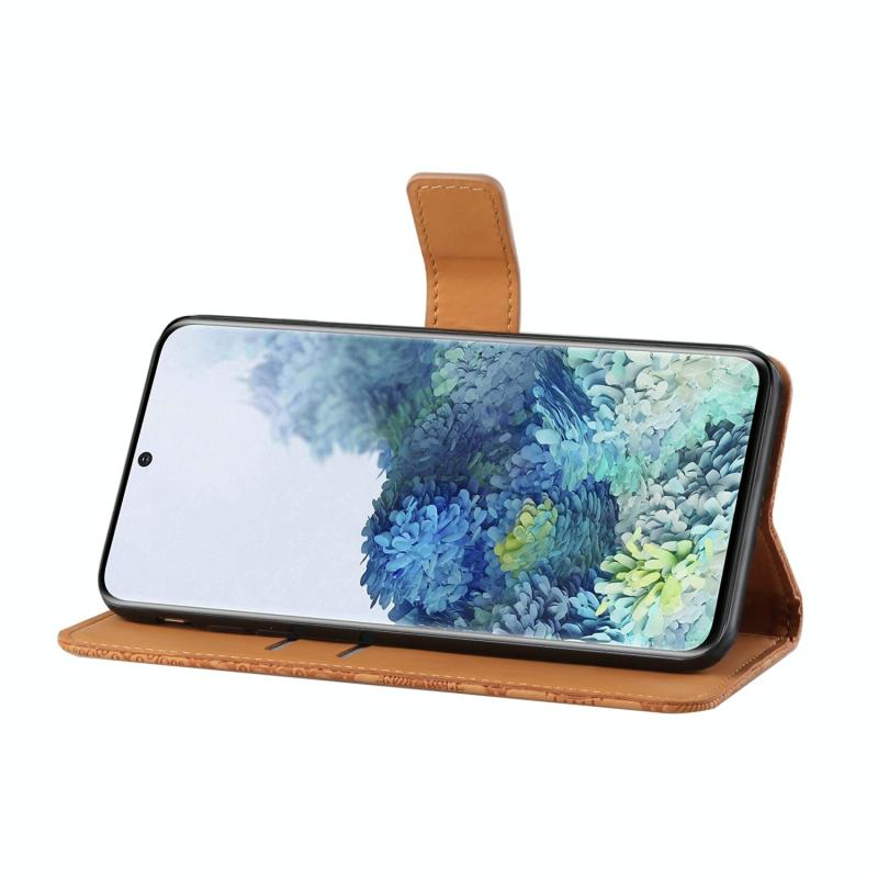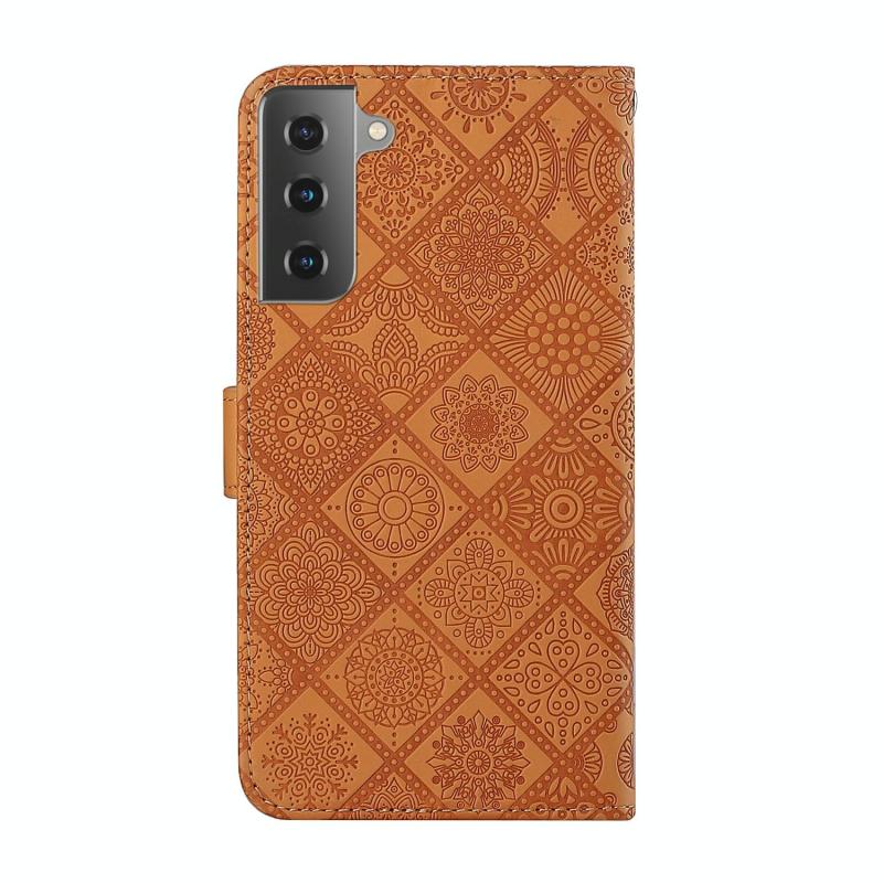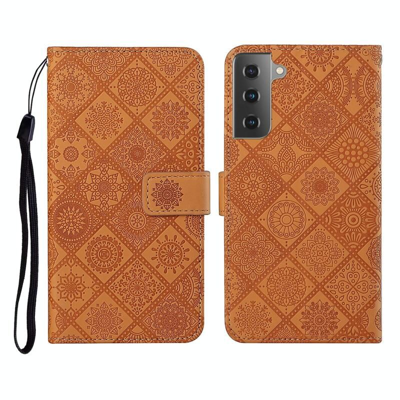 For Samsung Galaxy Galaxy S21 5G Ethnic Style Embossed Pattern Horizontal Flip Leather Case with Holder & Card Slots & Wallet & Lanyard(Brown)