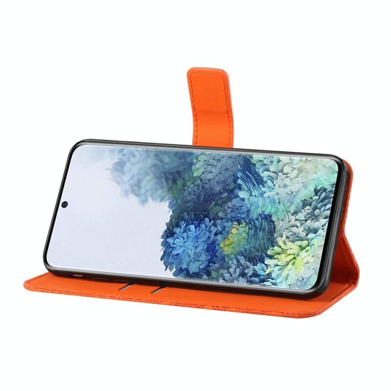 For Samsung Galaxy Galaxy S21 5G Ethnic Style Embossed Pattern Horizontal Flip Leather Case with Holder & Card Slots & Wallet & Lanyard(Orange)