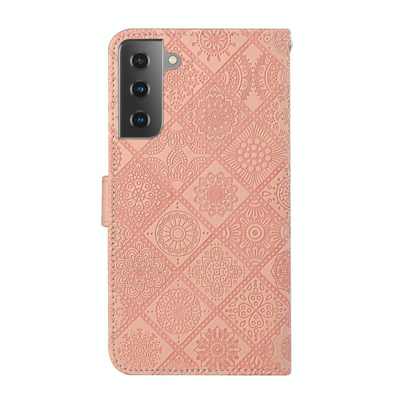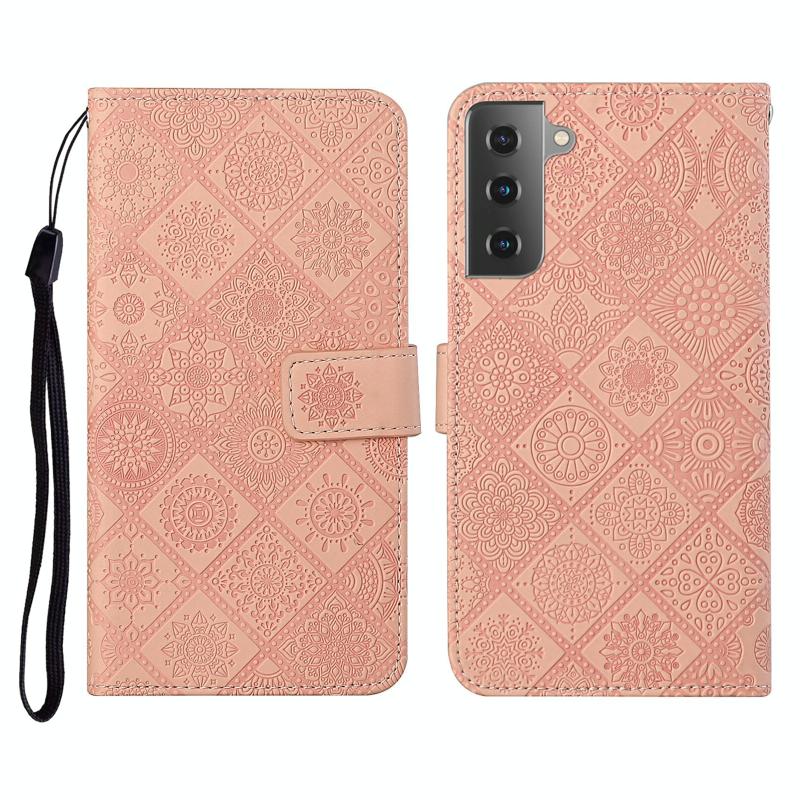 For Samsung Galaxy Galaxy S21 5G Ethnic Style Embossed Pattern Horizontal Flip Leather Case with Holder & Card Slots & Wallet & Lanyard(Pink)