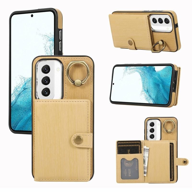 Για Samsung Galaxy Galaxy S22 5G βουρτσισμένη υφή πορτοφόλι δαχτυλίδι κάτοχος θήκη τηλεφώνου (κίτρινο)