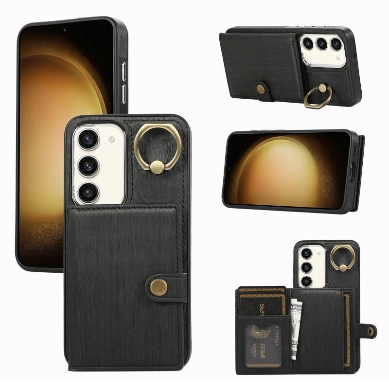 Για Samsung Galaxy Galaxy S23+ 5G βουρτσισμένη υφή πορτοφόλι δαχτυλίδι κάτοχος θήκη τηλεφώνου (Μαύρο)