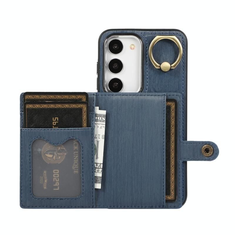 Για Samsung Galaxy Galaxy S23 5G βουρτσισμένη υφή πορτοφόλι δαχτυλίδι κάτοχος θήκη τηλεφώνου (μπλε)