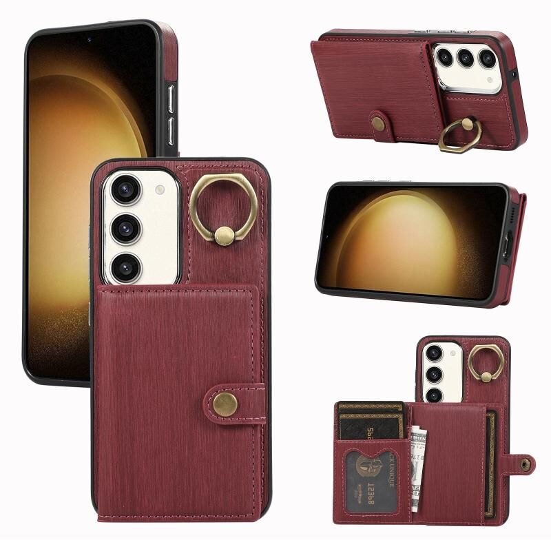 Για Samsung Galaxy Galaxy S23+ 5G βουρτσισμένη υφή πορτοφόλι δαχτυλίδι κάτοχος θήκη τηλεφώνου (σκούρο κόκκινο)