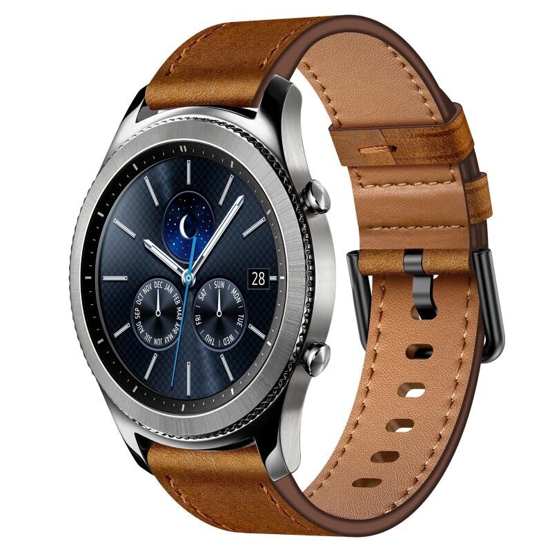 For Samsung Galaxy Gear S3 22mm SX Connector Metal Button Switch Leather Watch Band(Red Brown)