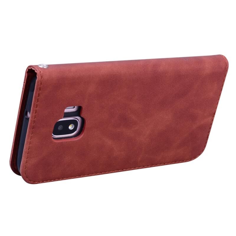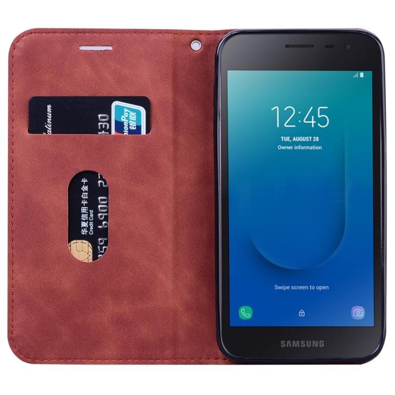 Για Samsung Galaxy J2 Core Frosted Business μαγνητική οριζόντια Flip PU δέρμα υπόθεση με θήκη & υποδοχή για κάρτες & κορδόνι (καφέ)