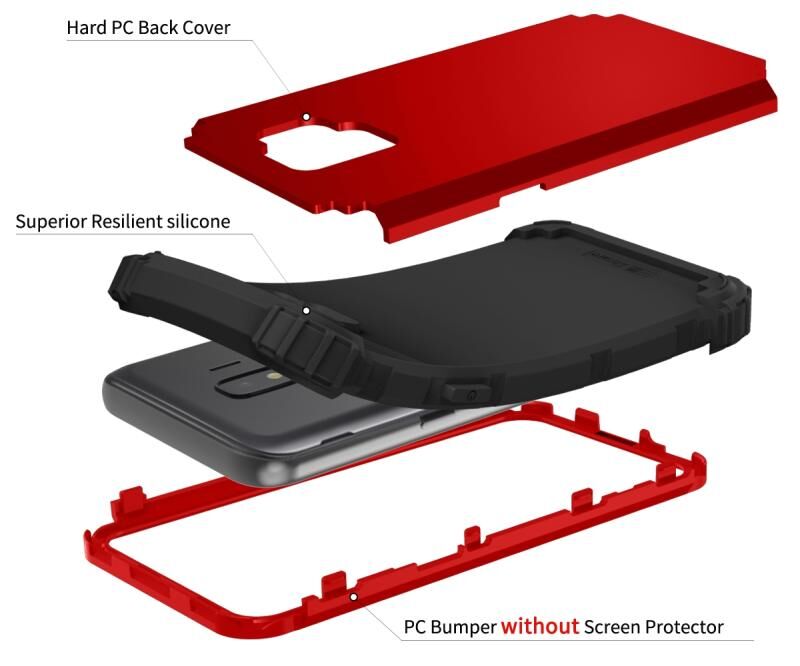 1. Το προϊόν αποτελείται από τρία στρώματα. Το ανώτερο στρώμα είναι το πλαίσιο PC για την προστασία της άκρης του κινητού τηλεφώνου. Το μεσαίο είναι κατασκευασμένο από σιλικόνη για να προστατεύει το πίσω κάλυμμα του κινητού τηλεφώνου από τη φθορά. Το κάτω στρώμα είναι η σκληρή θήκη από PC με λειτουργία κατά της πτώσης.