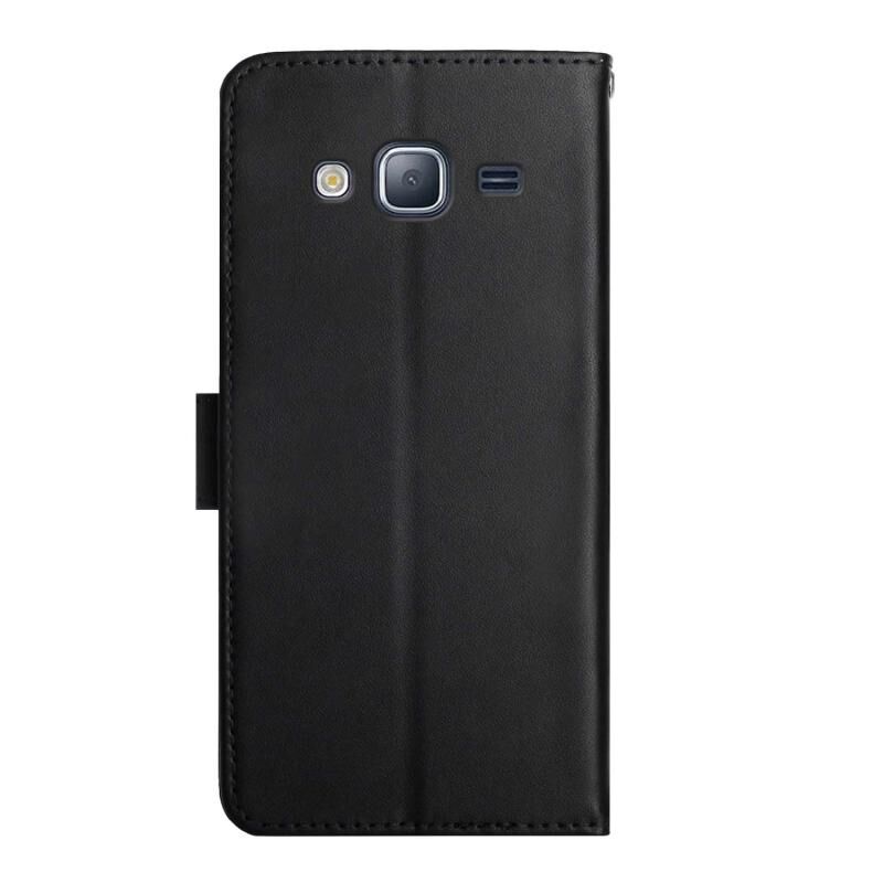 Θήκη τηλεφώνου Samsung Galaxy J2 Prime, γνήσιο δέρμα, οριζόντια, αντι-δακτυλικά αποτυπώματα, με καπάκι (Μαύρο)