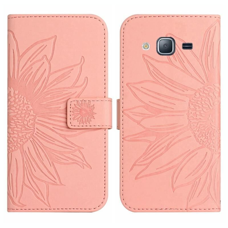 Για το Samsung Galaxy J2 Prime δέρμα αίσθηση Sun Flower μοτίβο Flip δέρμα τηλέφωνο υπόθεση με κορδόνι (ροζ)