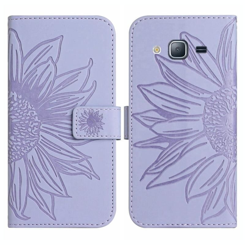 Για το Samsung Galaxy J2 Prime δέρμα αίσθηση Sun Flower μοτίβο Flip δέρμα τηλέφωνο υπόθεση με κορδόνι (μωβ)