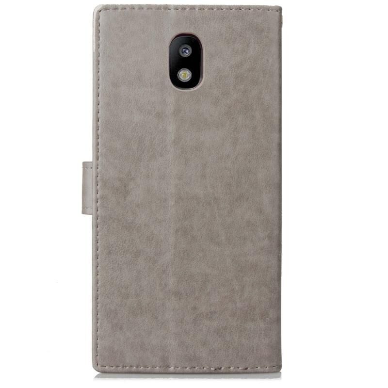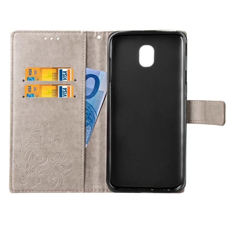 Για Samsung Galaxy J3(2018) Θήκη Προστασίας Δερμάτινη για Κινητό με Κούμπωμα Τριφύλλι, Ράβδωμα, Θήκη Κάρτας, Πορτοφόλι & Λειτουργία Στήριξης (Χρυσό Ρόδι)
