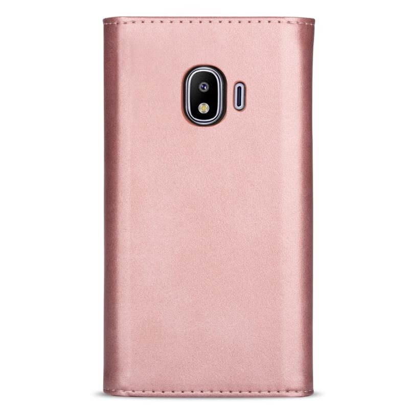 Θήκη δέρματος οριζόντιας αναδίπλωσης με αίσθηση δέρματος και φερμουάρ για Samsung Galaxy J4 (2018) με βάση, θήκες καρτών, κορνίζα φωτογραφιών, κορδόνι και μακρύ σχοινί (Χρυσός)