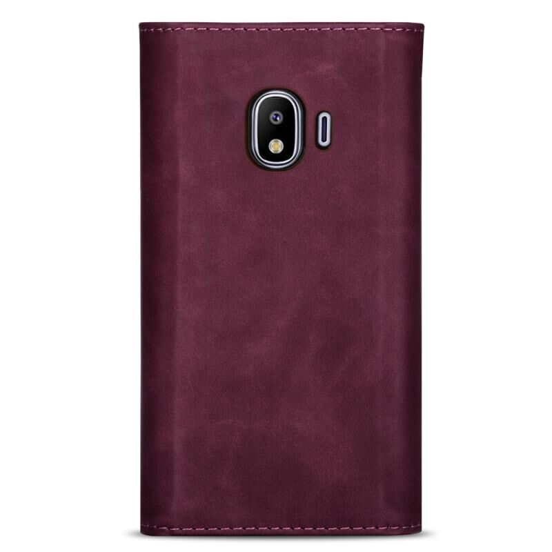 Θήκη δέρματος οριζόντιας αναδίπλωσης με αίσθηση δέρματος και φερμουάρ για Samsung Galaxy J4 (2018) με βάση, θήκες καρτών, κορνίζα φωτογραφιών, κορδόνι και μακρύ σχοινί (Μαύρο)