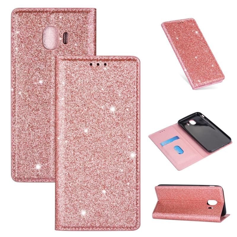 Για Samsung Galaxy J4 (2018) Ultrathin Glitter μαγνητική οριζόντια Flip δερμάτινη θήκη με θήκη & υποδοχές για κάρτες (ροζ χρυσό)