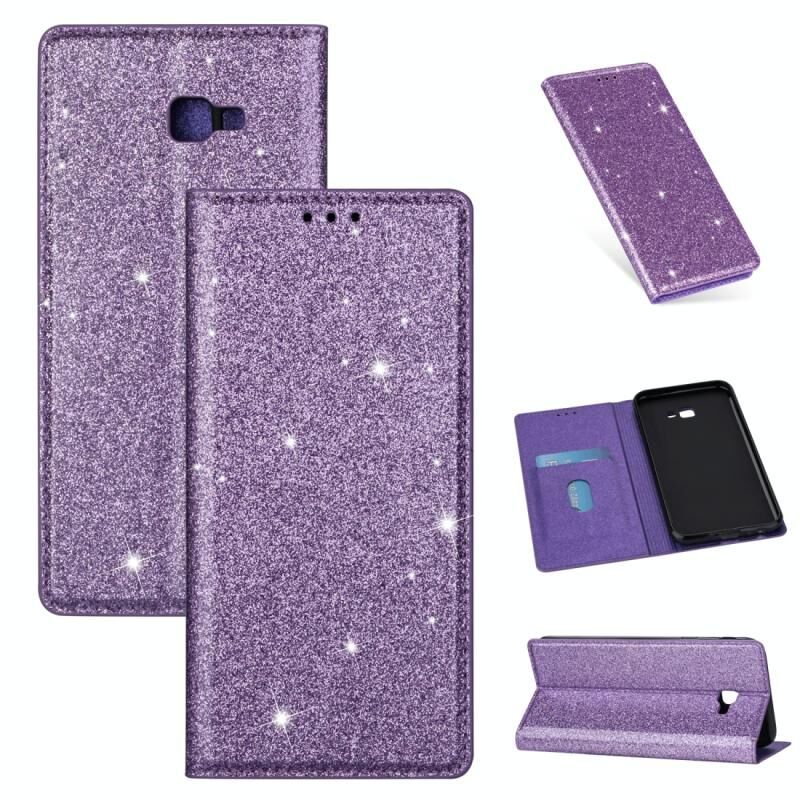 Θήκη Samsung Galaxy J4+ Υπερλεπτή Μαγνητική Οριζόντια Δερμάτινη με Λάμψη και Θήκη & Θήκες Καρτών (Μωβ)