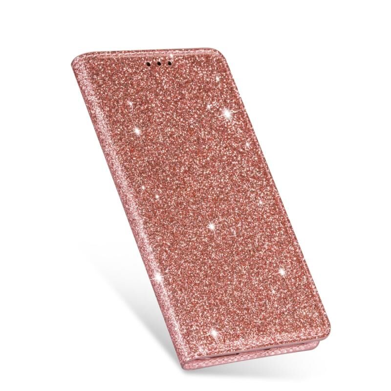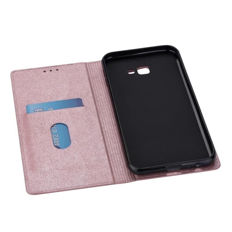 Θήκη Samsung Galaxy J4+ Υπερλεπτή Μαγνητική Οριζόντια Δερμάτινη με Λάμψη και Θήκη & Θήκες Καρτών (Ροζ χρυσός)