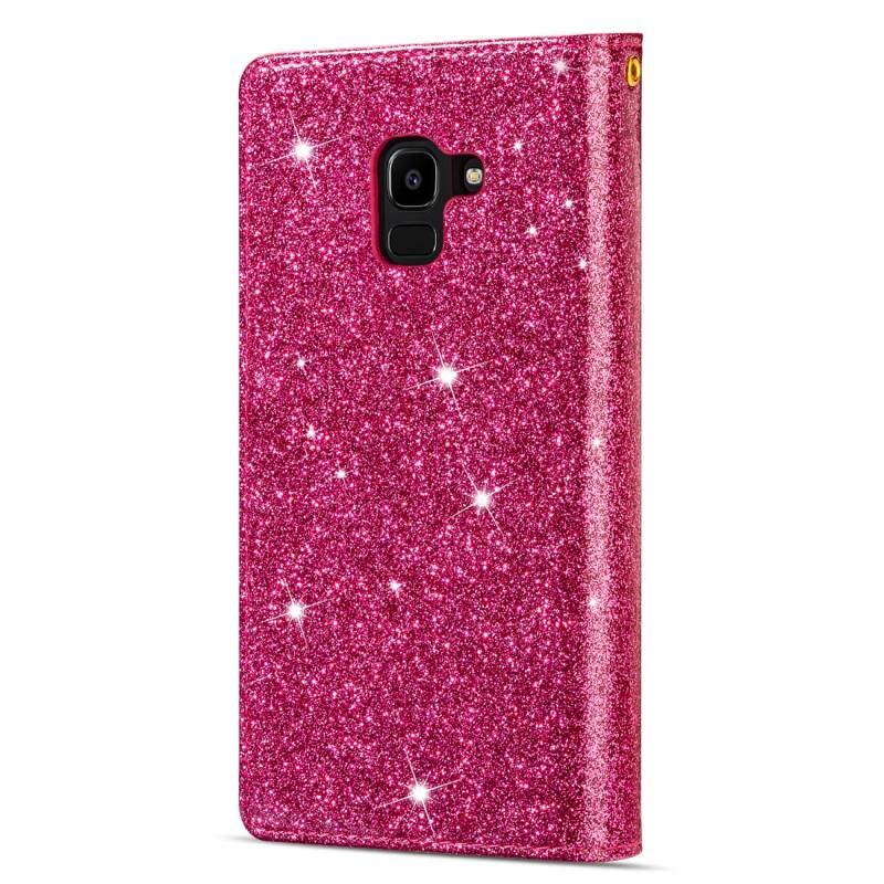 Για Samsung Galaxy J6 (2018) Θήκη πολλαπλών καρτών με σχέδιο αστρικού ουρανού, χάραξη laser, γκλίτερ, οριζόντια θήκη flip από δέρμα με βάση στήριξης & πορτοφόλι & λουρί (Μωβ)