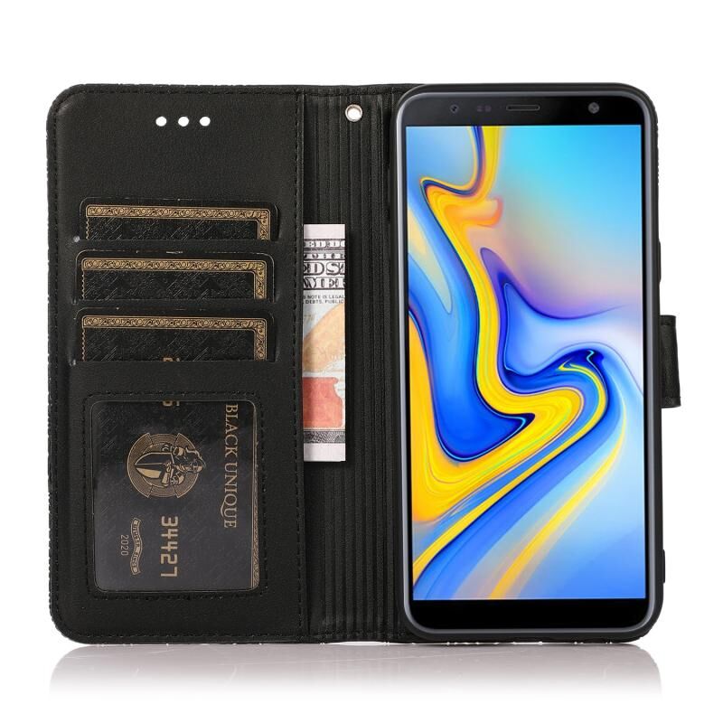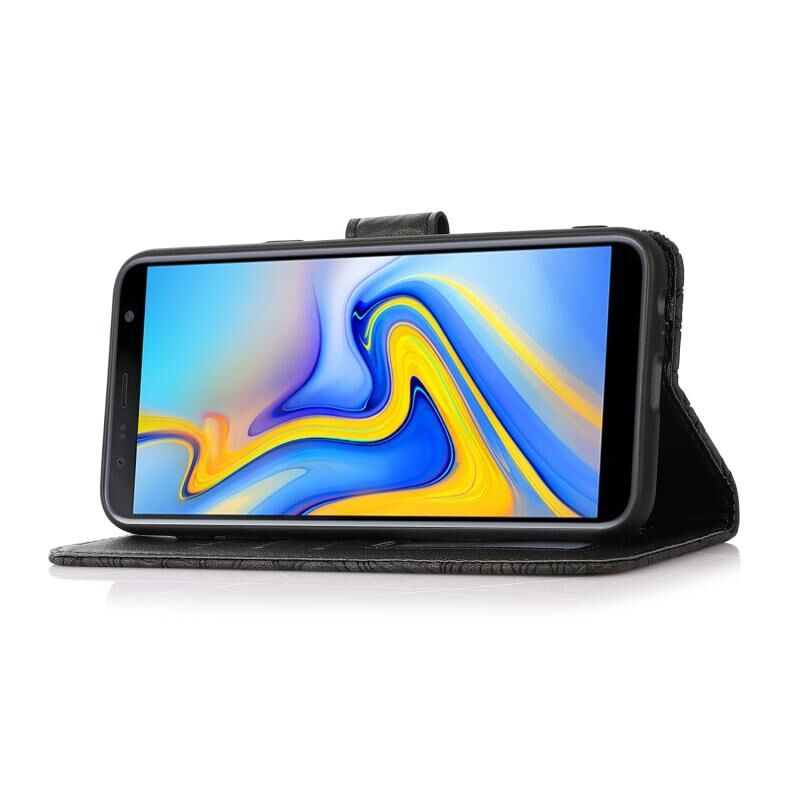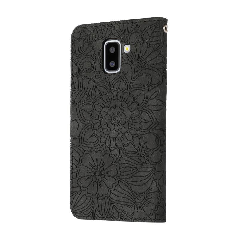 Για το Samsung Galaxy J6 Skin Feel ανάγλυφο ηλιοτρόπιο οριζόντια Flip δερμάτινη θήκη με θήκη & υποδοχές για κάρτες & πορτοφόλι & κορδόνι (Μαύρο)
