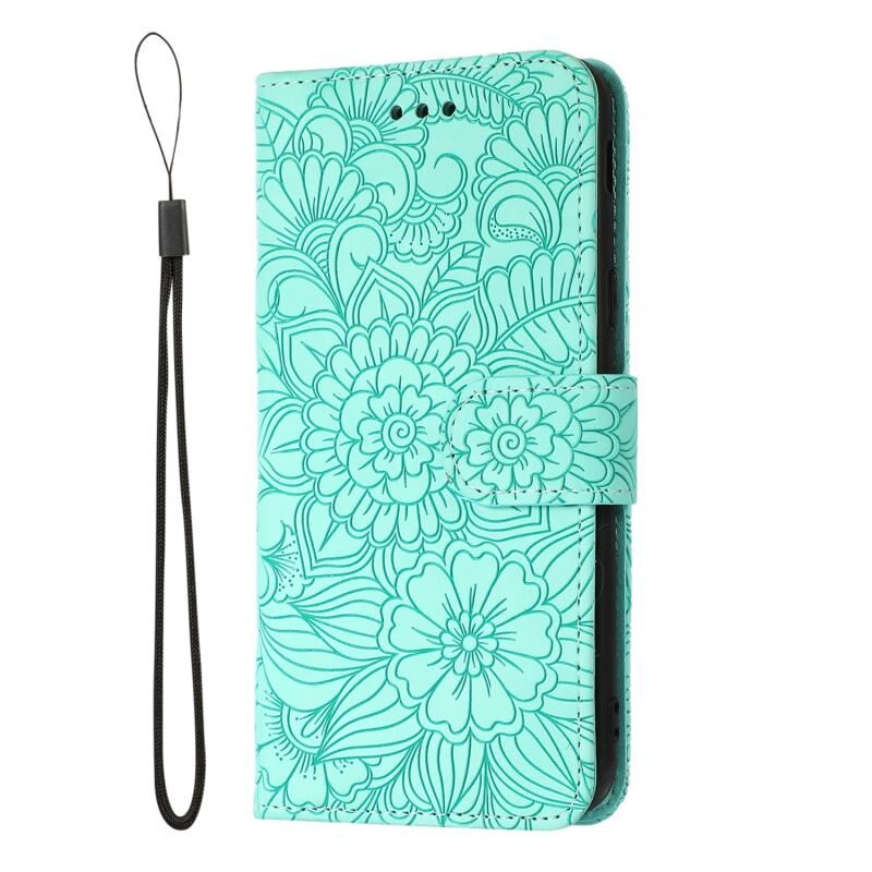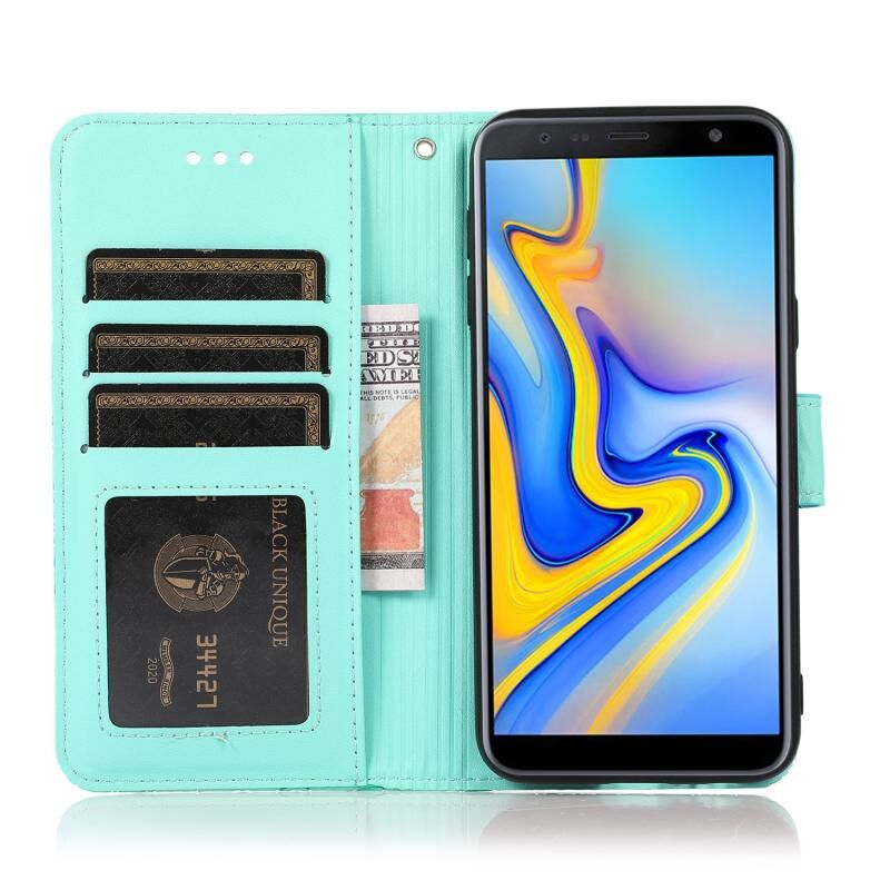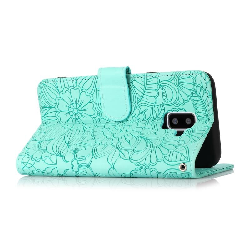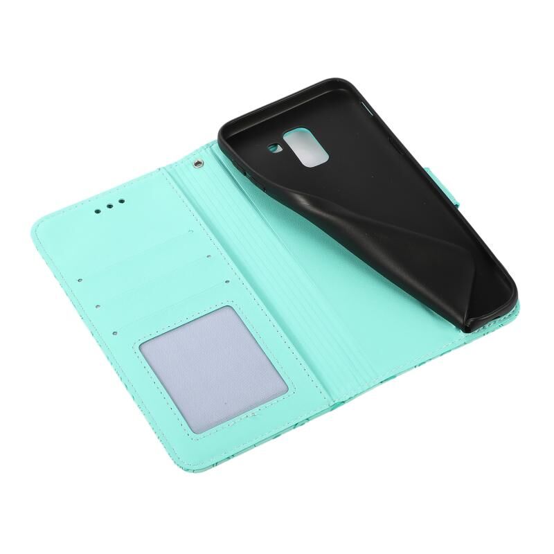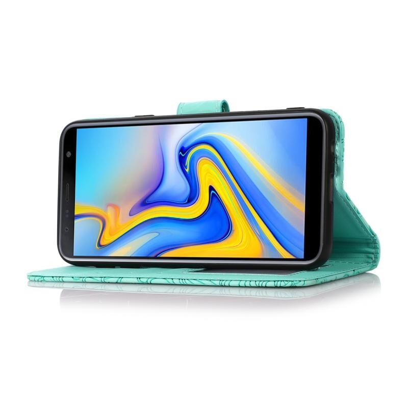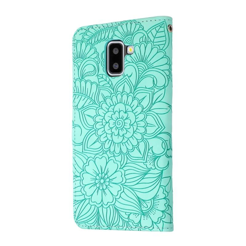 Για Samsung Galaxy J6 δέρμα αίσθηση ανάγλυφο ηλιοτρόπιο οριζόντια Flip δερμάτινη θήκη με υποδοχές για κάρτες & υποδοχές & πορτοφόλι & κορδόνι (πράσινο)