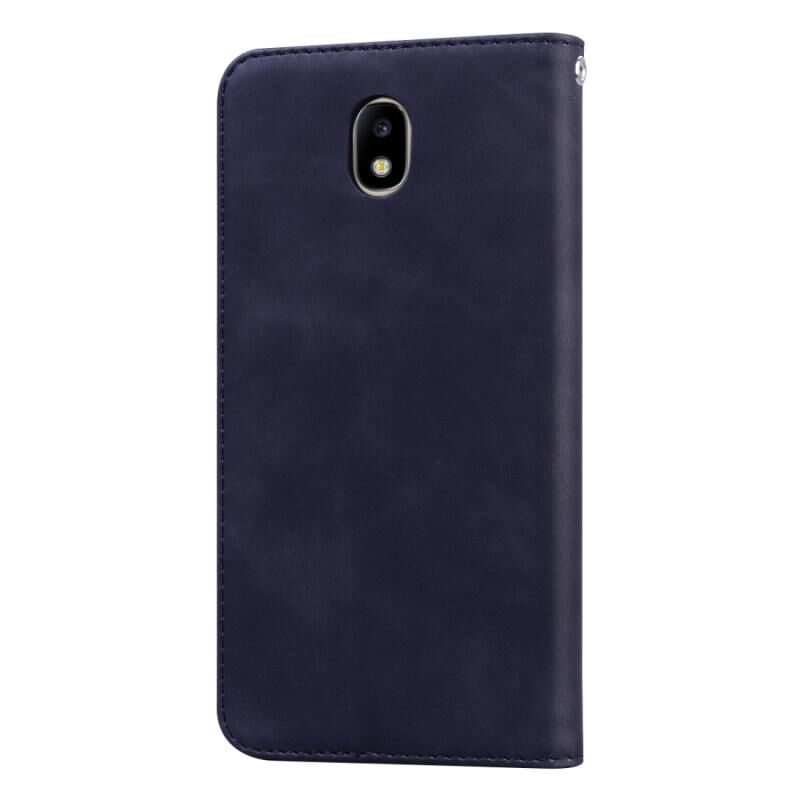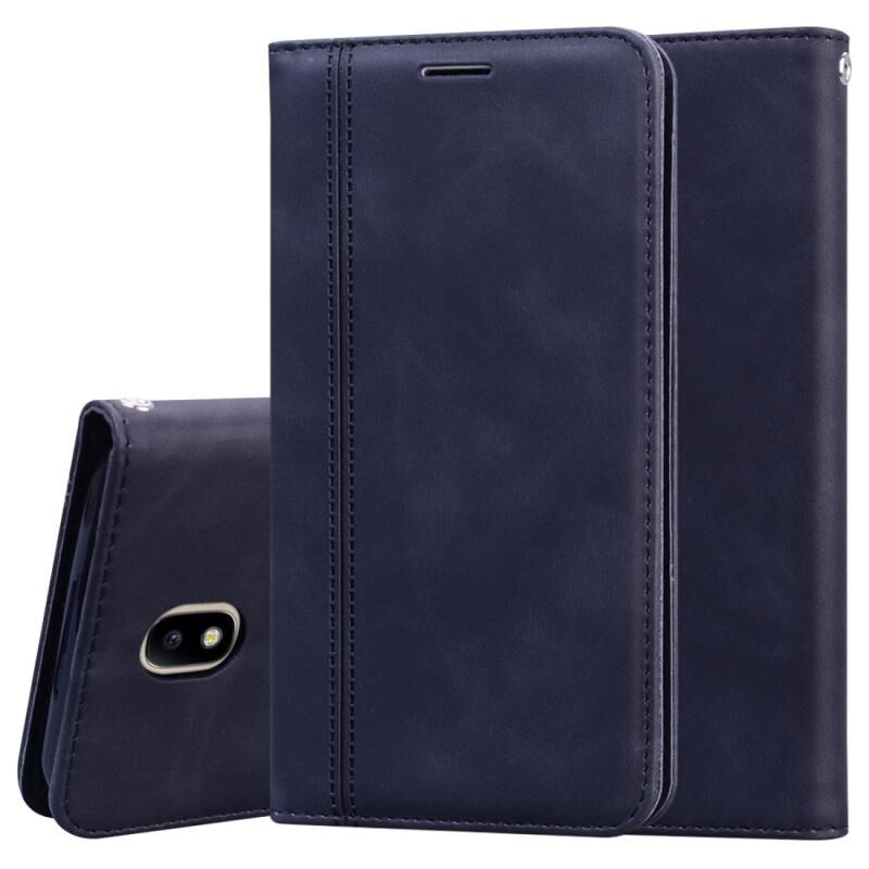 Για Samsung Galaxy J7 / J730 (ΕΕ) Παγωμένο Business Μαγνητική Οριζόντια Flip PU δέρμα θήκη με θήκη & υποδοχή για κάρτες & κορδόνι (Μαύρο)