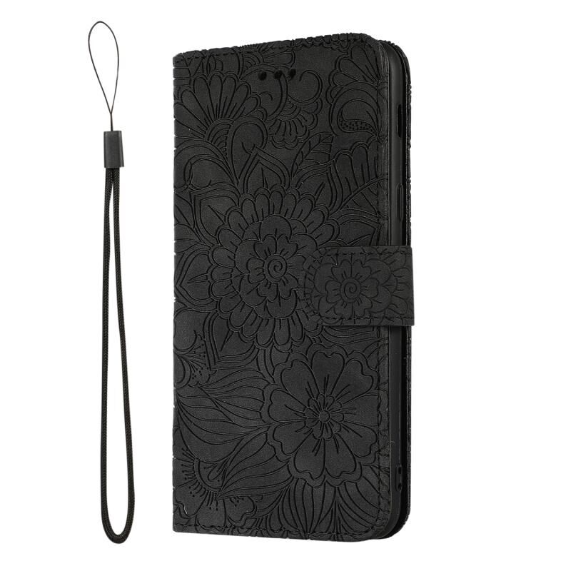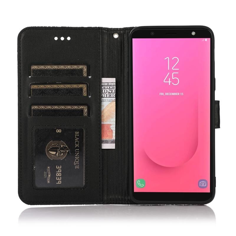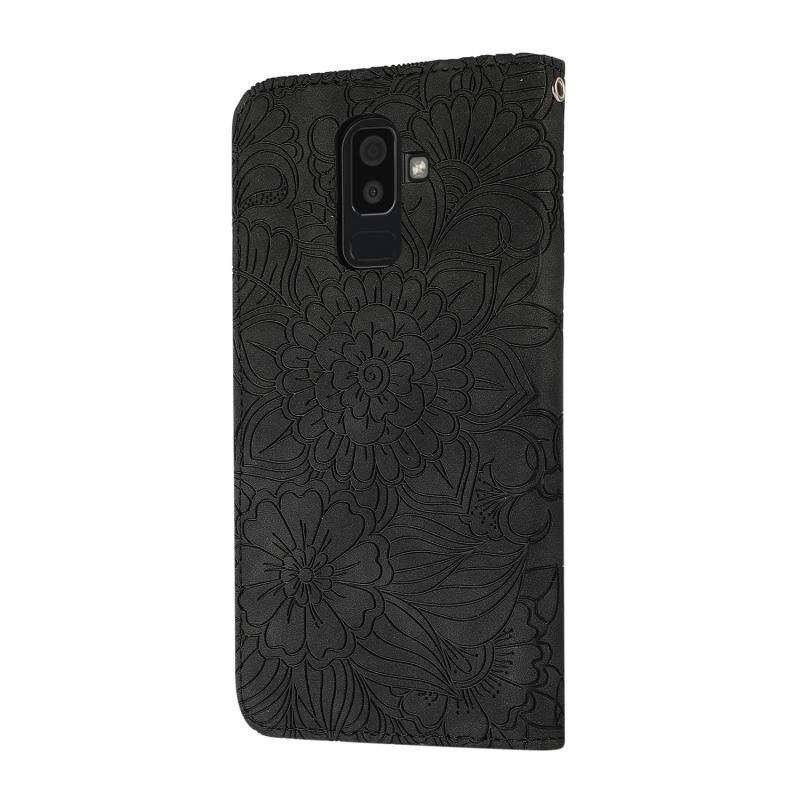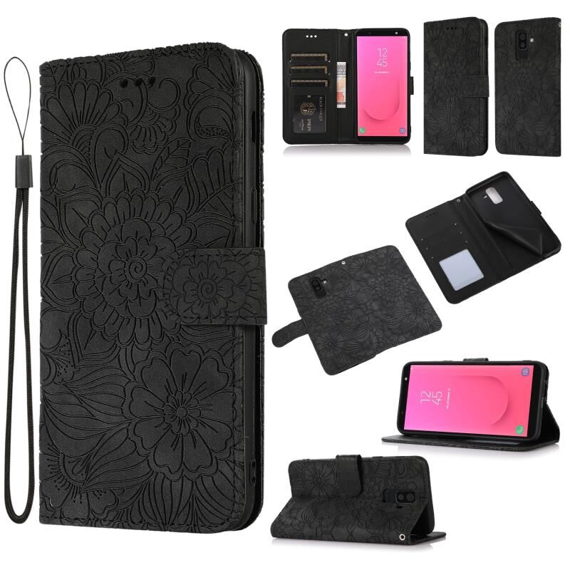 Για το Samsung Galaxy J8 Skin Feel ανάγλυφο ηλιοτρόπιο οριζόντια Flip δερμάτινη θήκη με θήκη & υποδοχές για κάρτες & πορτοφόλι & κορδόνι (Μαύρο)