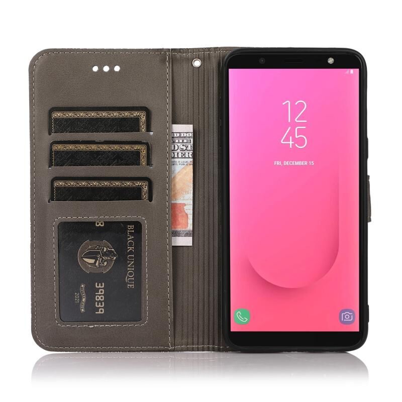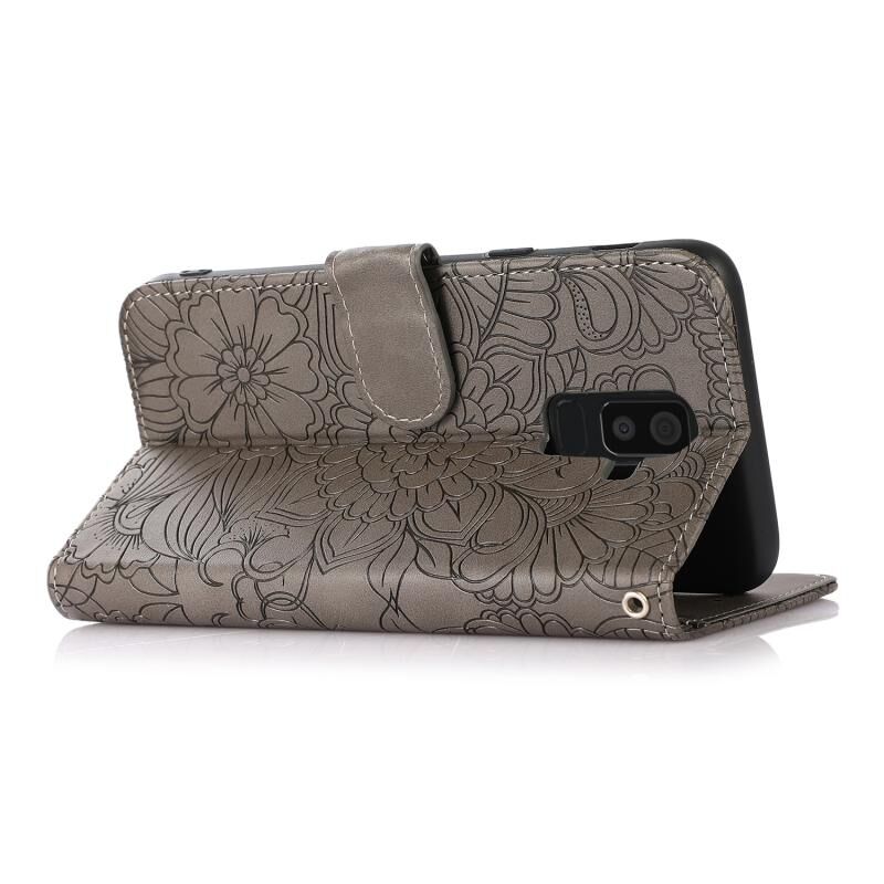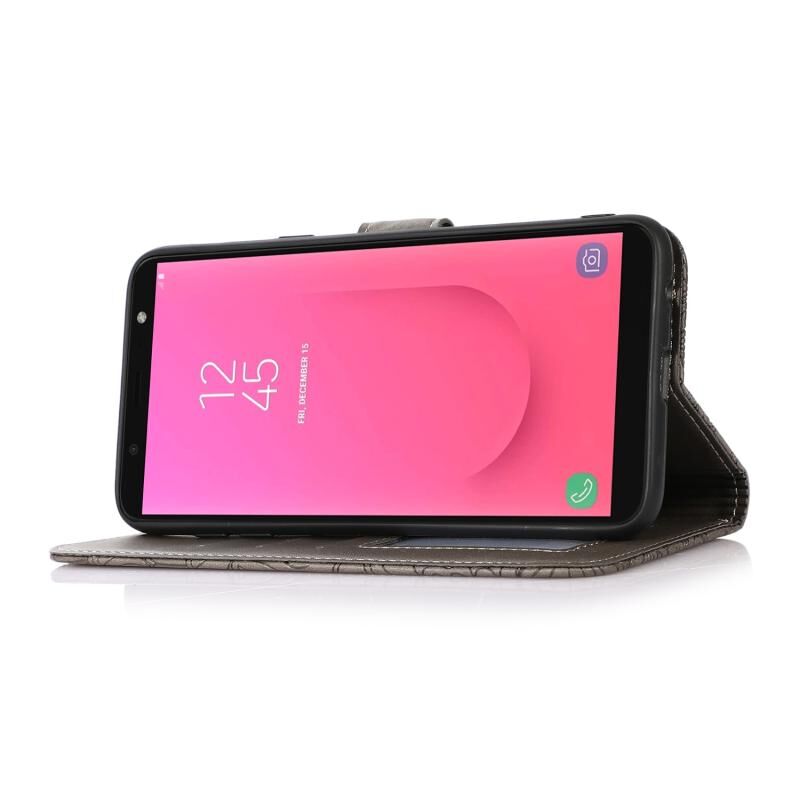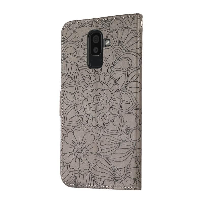 Για Samsung Galaxy J8 δέρμα αίσθηση ανάγλυφο ηλιοτρόπιο οριζόντια Flip δερμάτινη θήκη με υποδοχές για κάρτες & υποδοχές & πορτοφόλι & κορδόνι (γκρι)