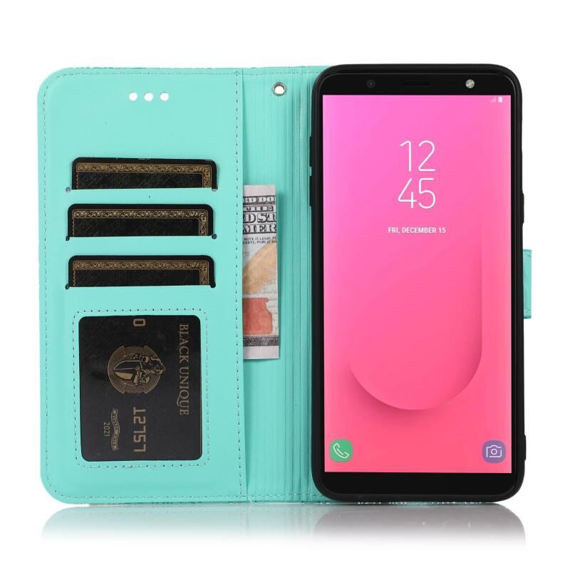 Για Samsung Galaxy J8 δέρμα αίσθηση ανάγλυφο ηλιοτρόπιο οριζόντια Flip δερμάτινη θήκη με υποδοχές για κάρτες & υποδοχές & πορτοφόλι & κορδόνι (πράσινο)