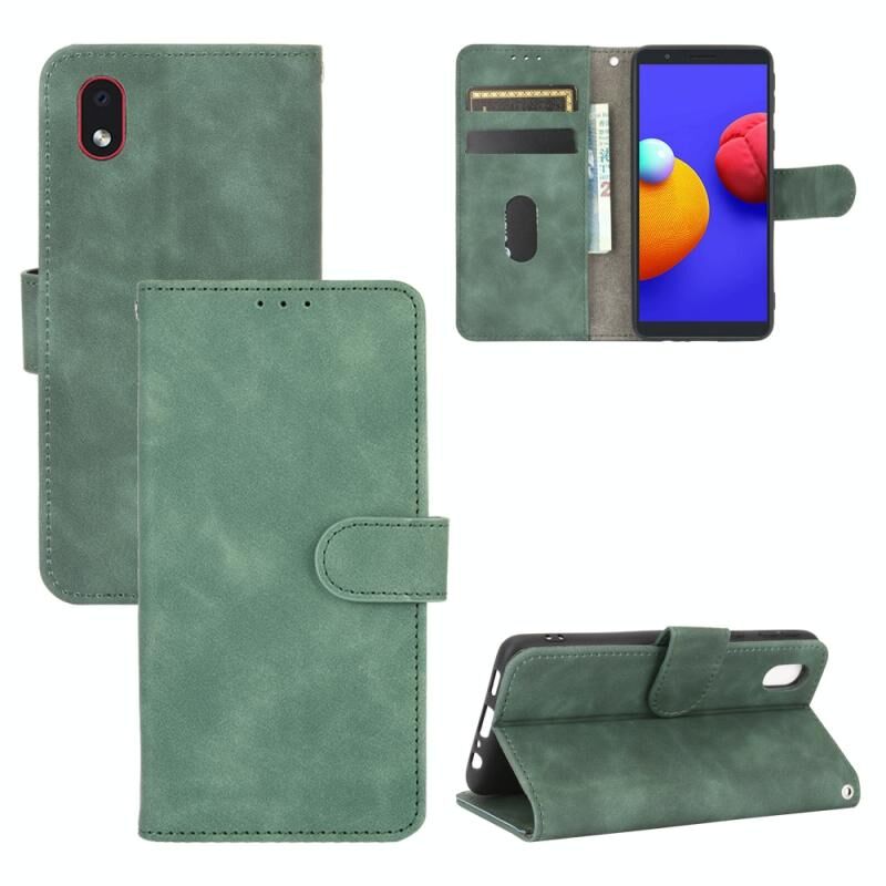 Για Samsung Galaxy M01 Core / A01 Core Solid Color Skin Feel μαγνητική πόρπη οριζόντια Flip μοσχάρι υφή PU δέρμα υπόθεση με κάτοχο & υποδοχές για κάρτες & πορτοφόλι (πράσινο)