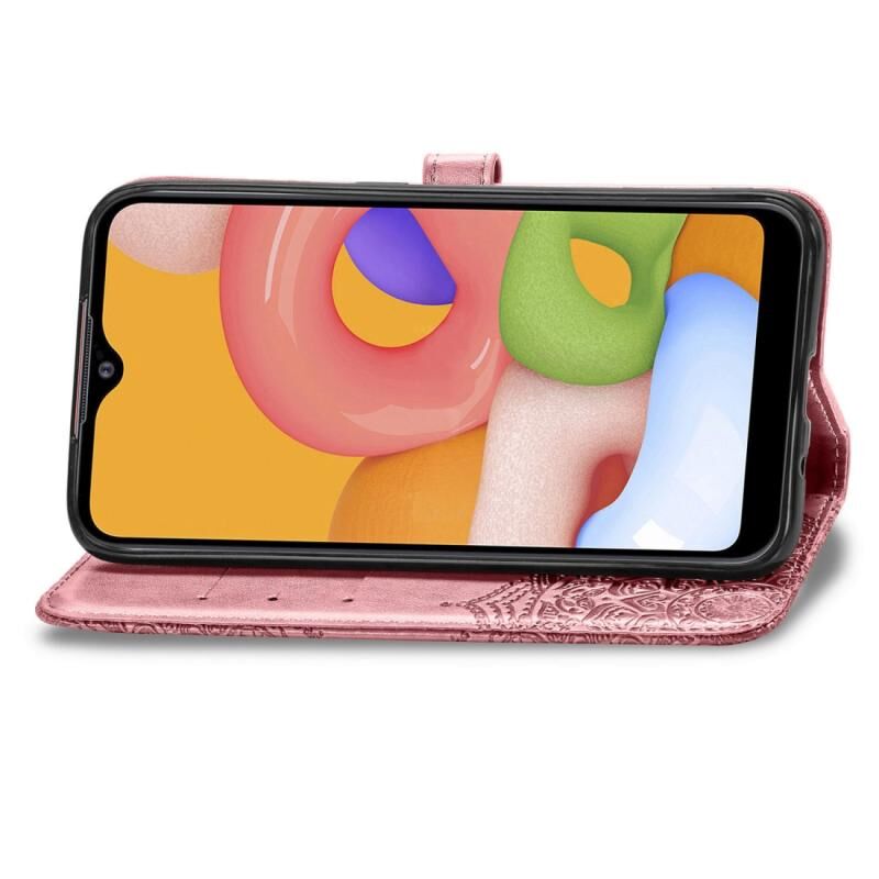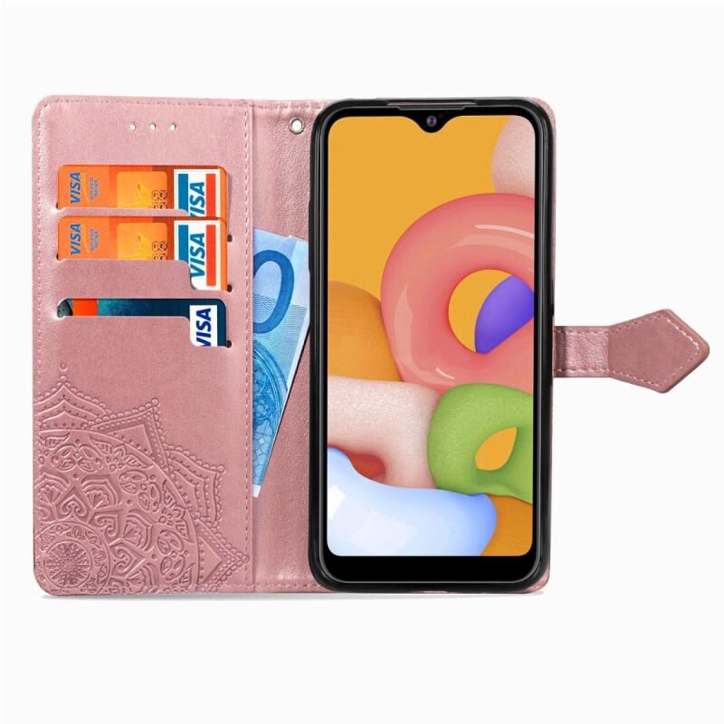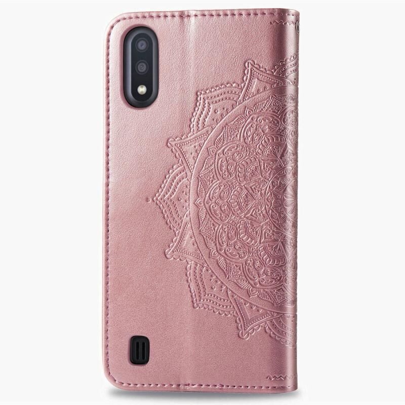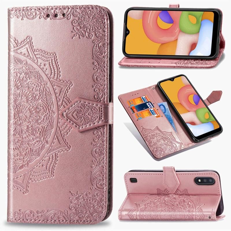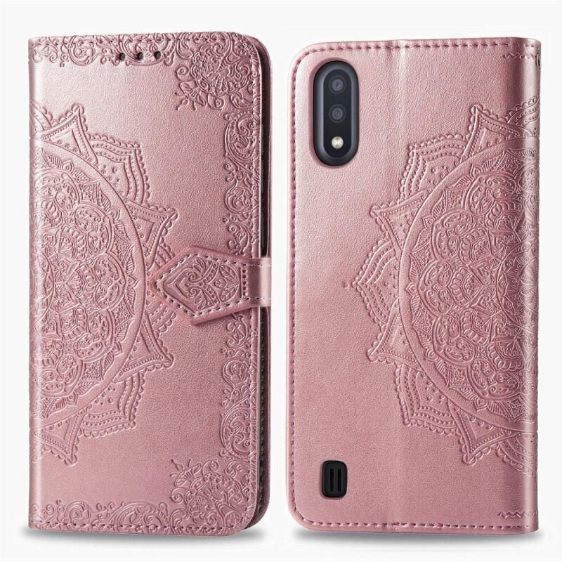 Για Samsung Galaxy M01 Halfway Mandala ανάγλυφο μοτίβο οριζόντια Flip δερμάτινη θήκη με κάτοχο & υποδοχές για κάρτες & πορτοφόλι & κορδόνι (Ροζ χρυσός)