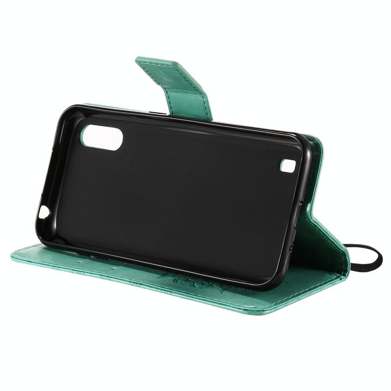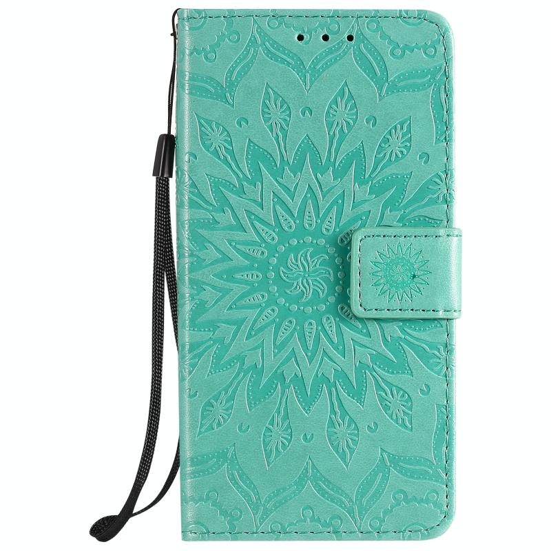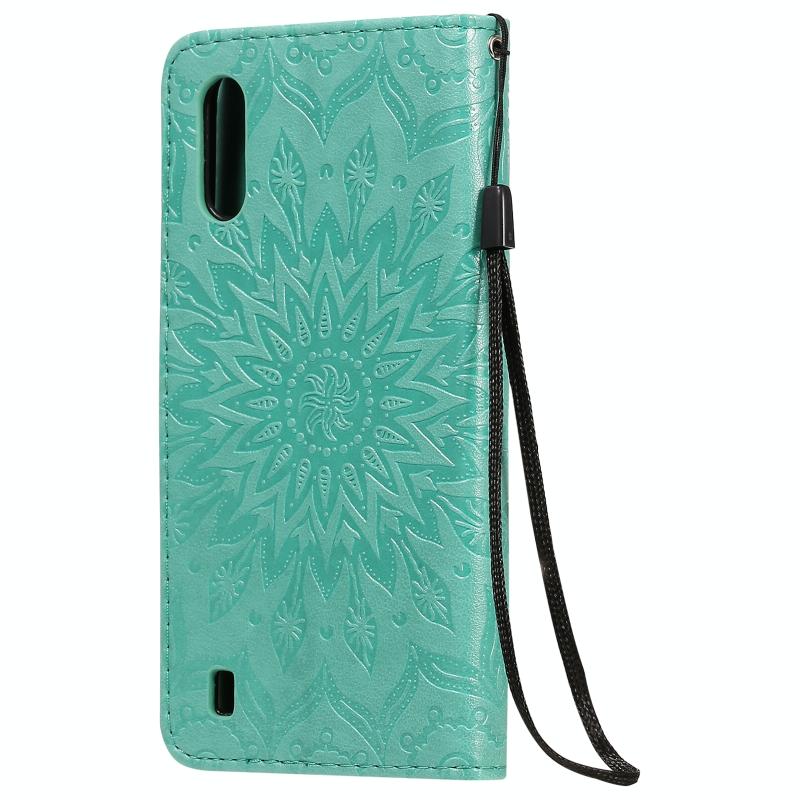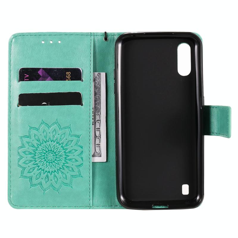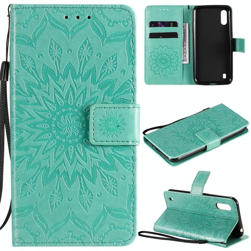 For Samsung Galaxy M01 Pressed Printing Sunflower Pattern Horizontal Flip PU Leather Case with Holder & Card Slots & Wallet & Lanyard(Green)