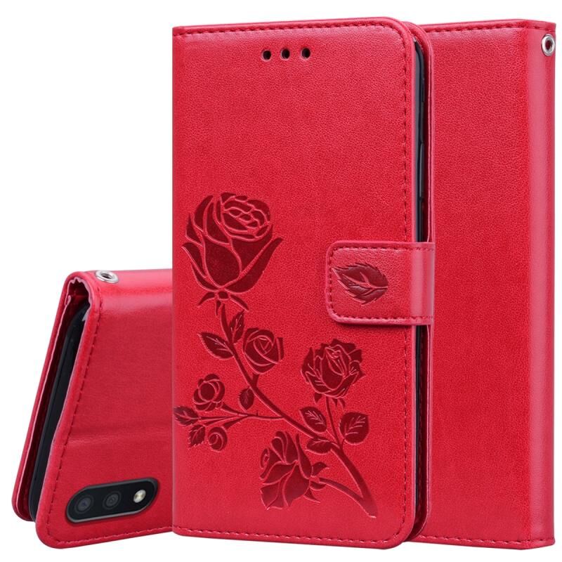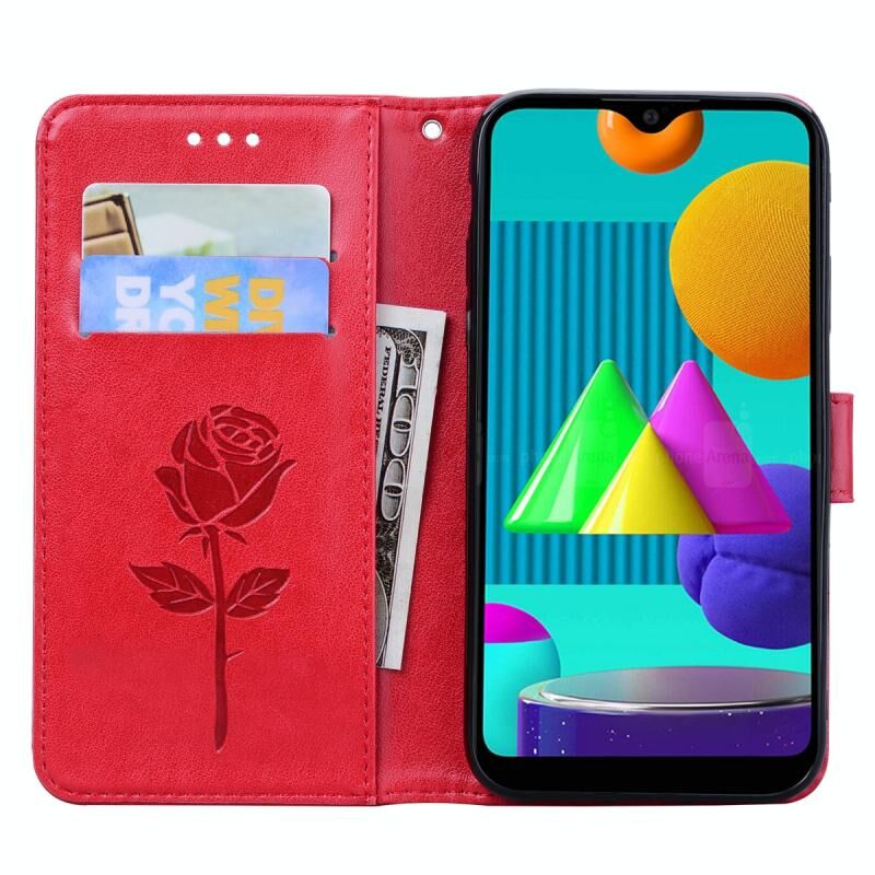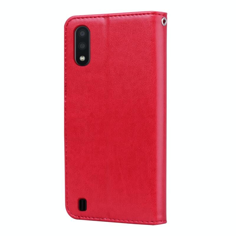Για Samsung Galaxy M01 Rose ανάγλυφο οριζόντια Flip PU δέρμα υπόθεση με θήκη & υποδοχές για κάρτες & πορτοφόλι (κόκκινο)