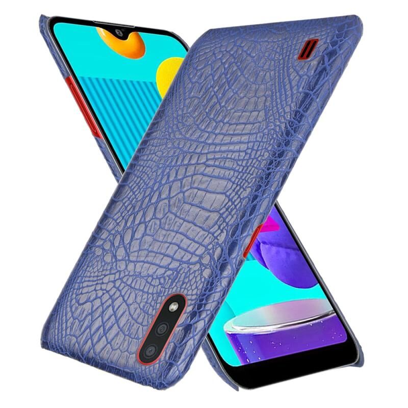Θήκη για Samsung Galaxy M01 ανθεκτική στις κρούσεις, με υφή κροκόδειλου, από PC + PU (Μπλε)