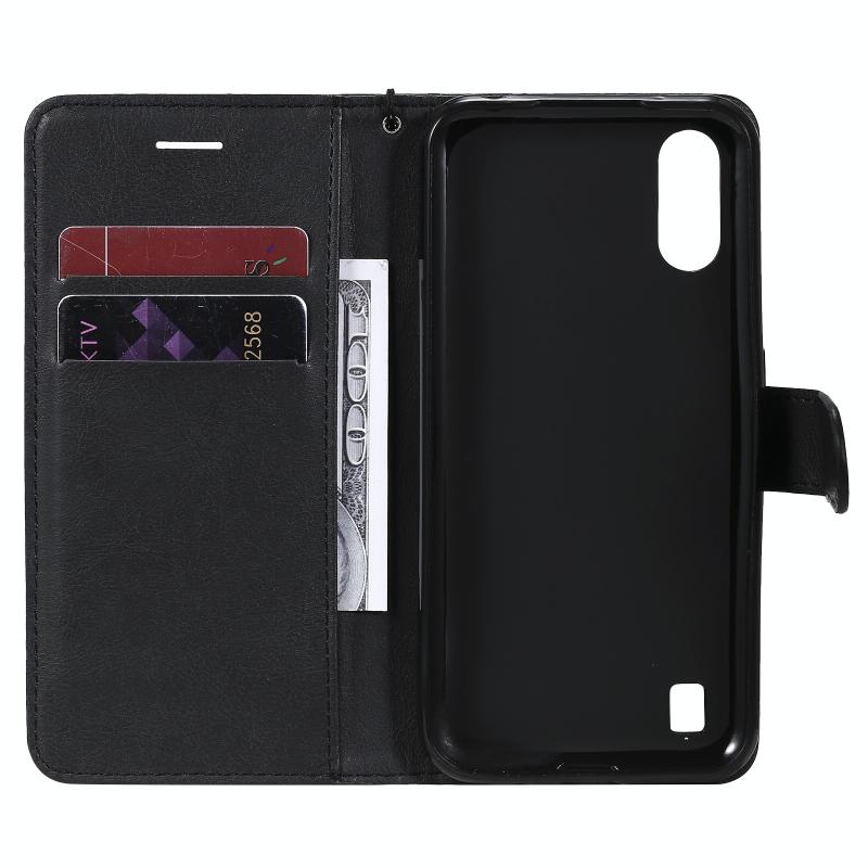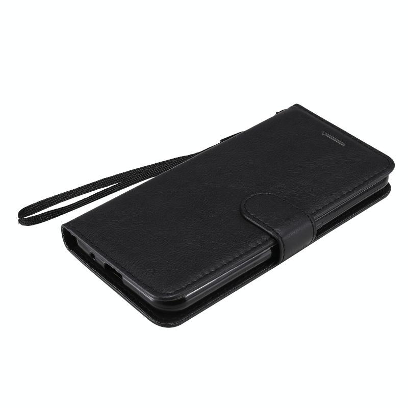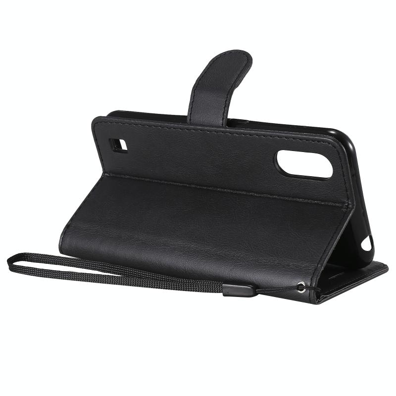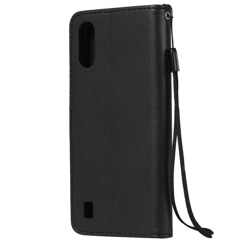 For Samsung Galaxy M01 Solid Color Horizontal Flip Protective Leather Case with Holder & Card Slots & Wallet & Photo Frame & Lanyard(Black)