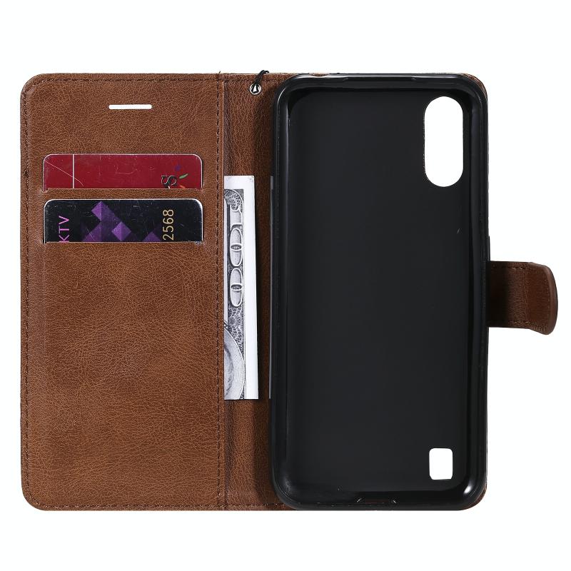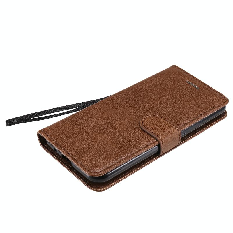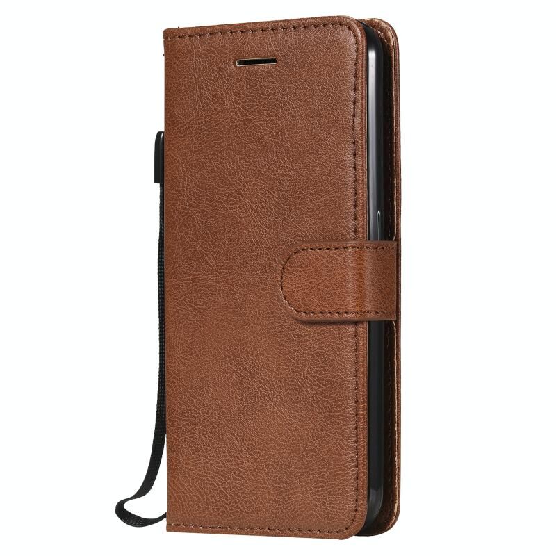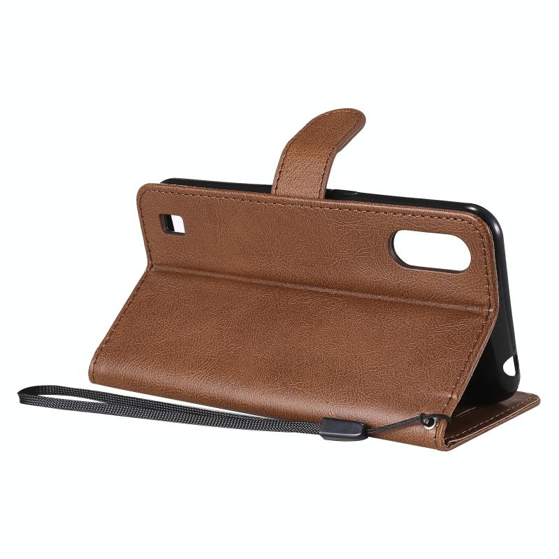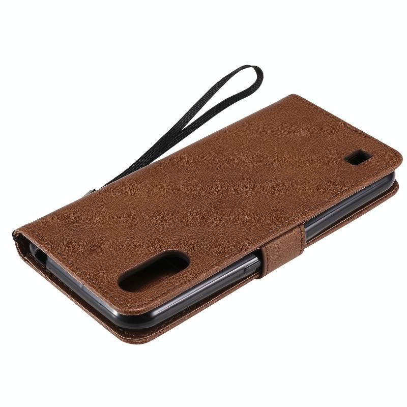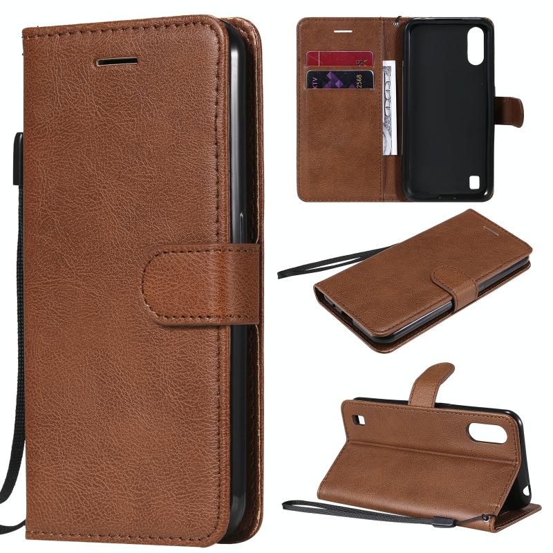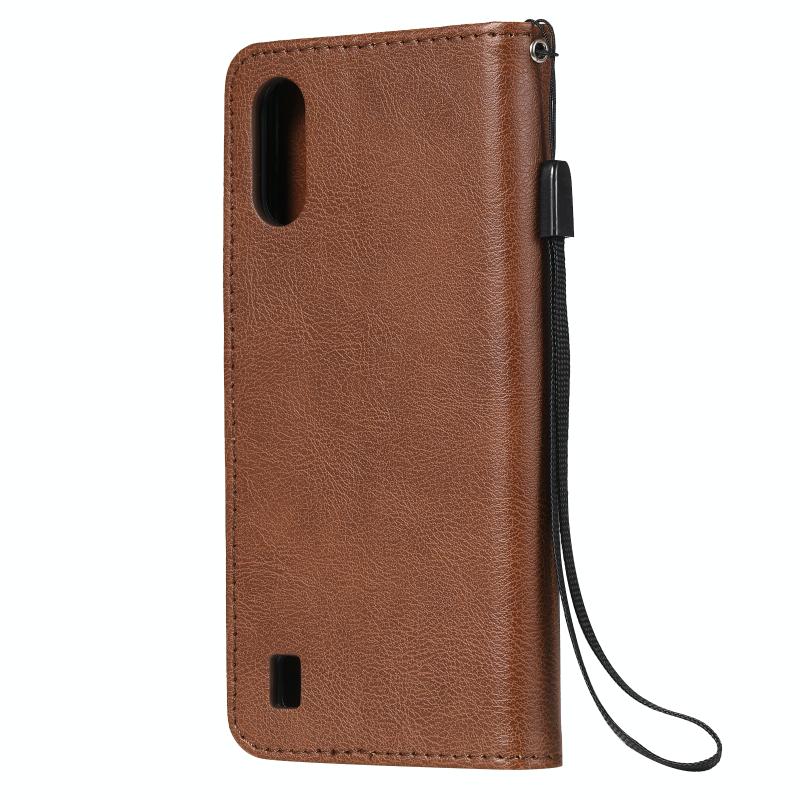 For Samsung Galaxy M01 Solid Color Horizontal Flip Protective Leather Case with Holder & Card Slots & Wallet & Photo Frame & Lanyard(Brown)