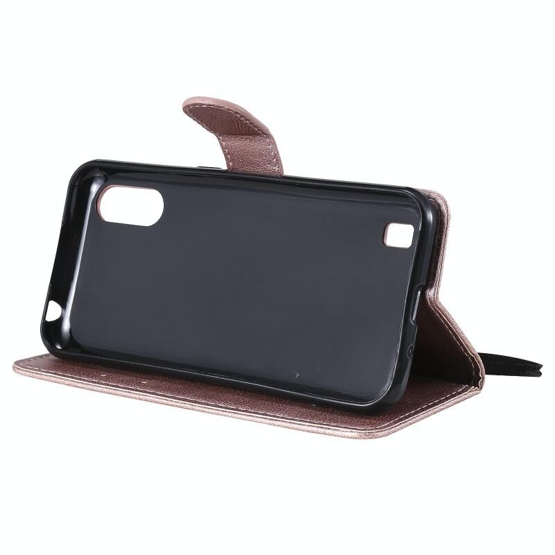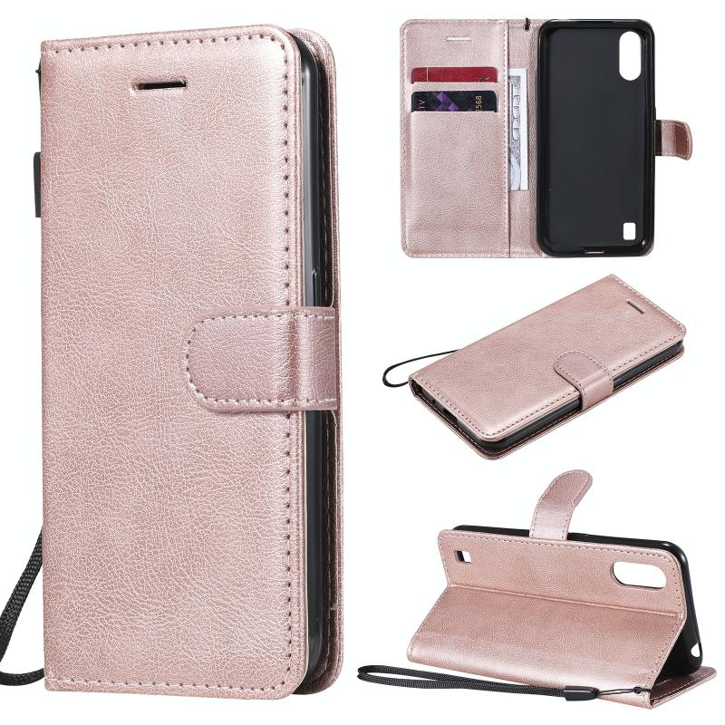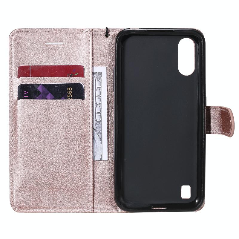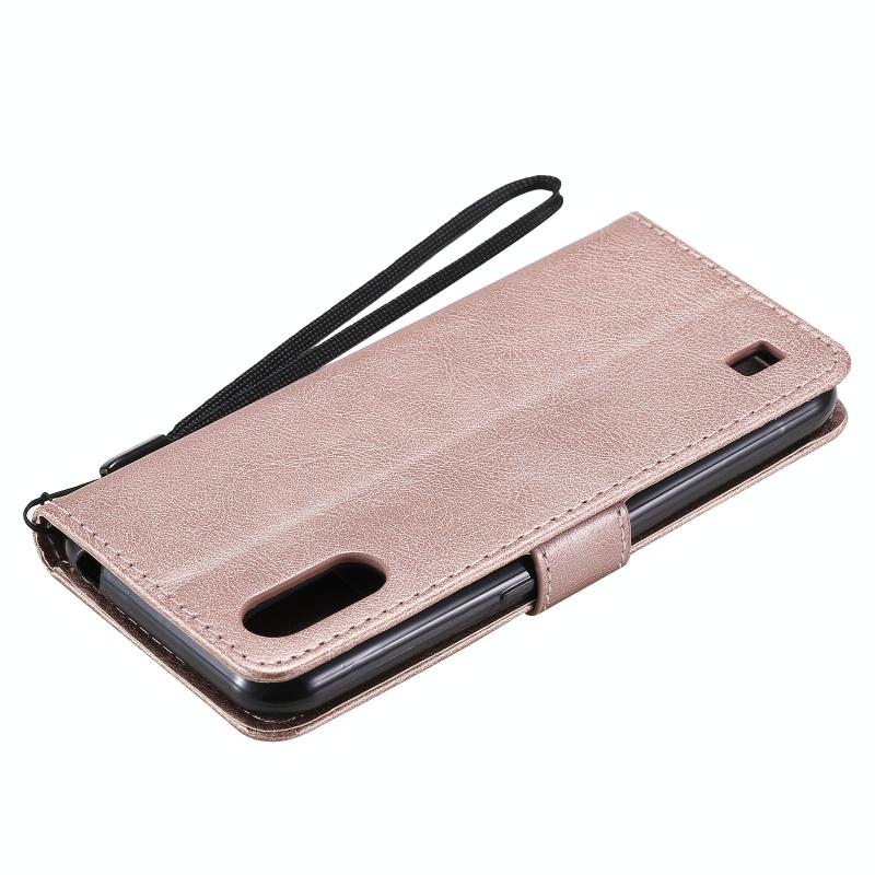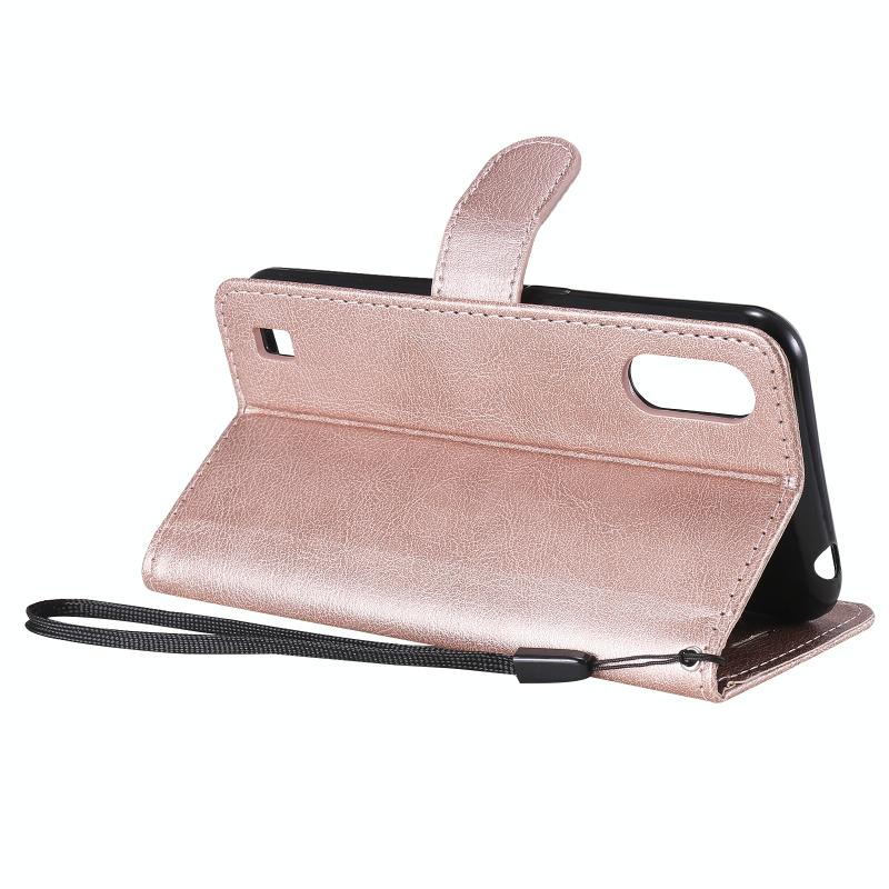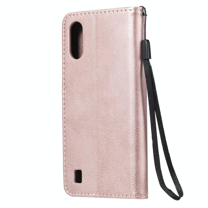 Θήκη Samsung Galaxy M01 Μονόχρωμη Οριζόντια Αναδιπλούμενη Προστατευτική Δερμάτινη με Θήκη & Θήκες Καρτών & Πορτοφόλι & Κορνίζα Φωτογραφιών & Λουρί (Χρυσό Ρόδι)