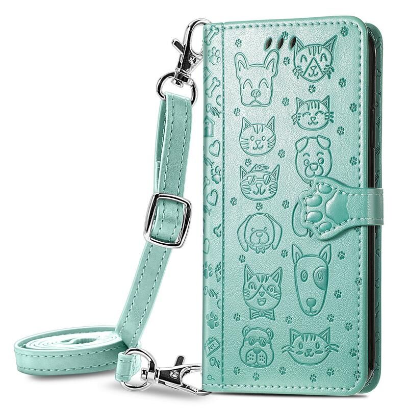 Θήκη Samsung Galaxy M02/A02, χαριτωμένη ανάγλυφη θήκη flip από δέρμα με σχέδια γάτας και σκύλου, με βάση στήριξης, θήκες καρτών, πορτοφόλι, λουρί crossbody και κάλυμμα καρτών (Ροζ)