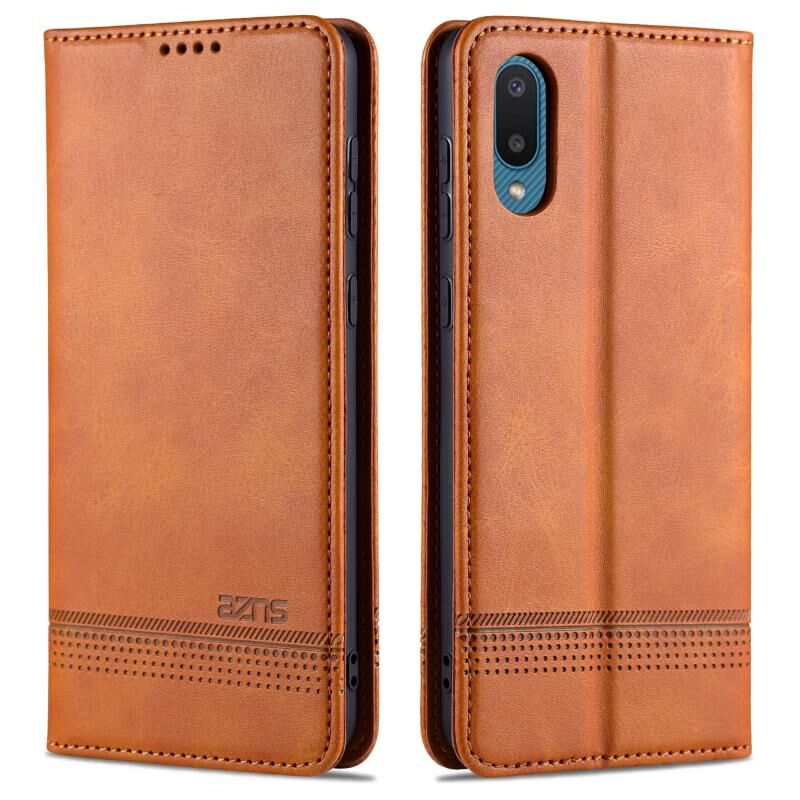 Για το Samsung Galaxy M02 (έκδοση ΕΕ) AZNS Μαγνητική θήκη από δέρμα με υφή μοσχαριού Οριζόντια αναδιπλούμενη δερμάτινη θήκη με υποδοχές για κάρτες & θήκη & πορτοφόλι (ανοιχτό καφέ) (AZNS)