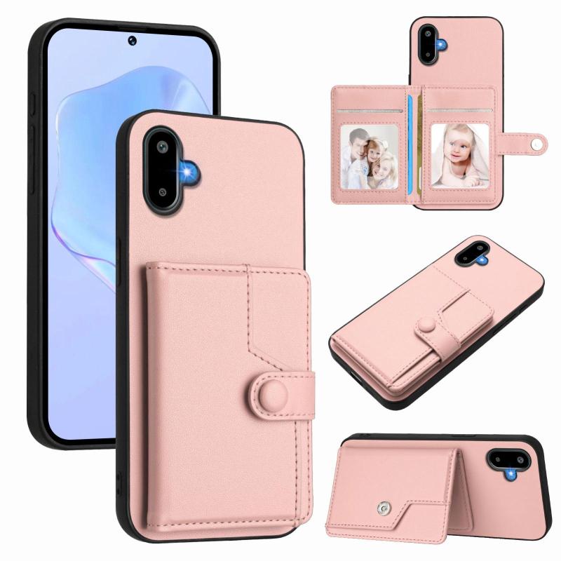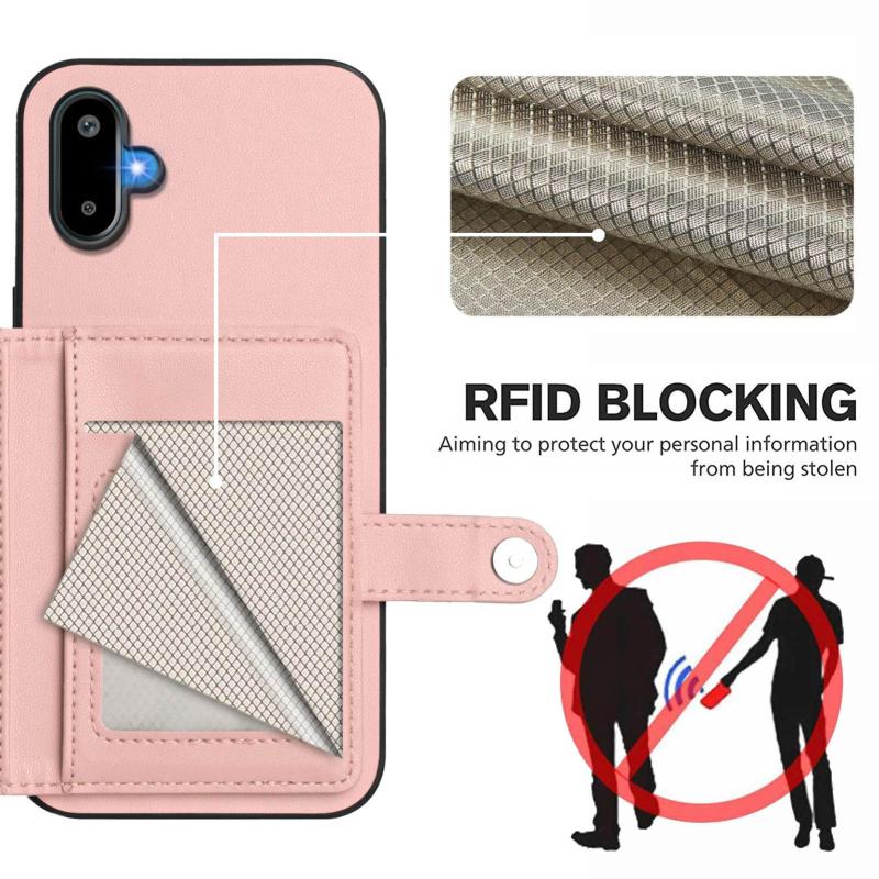 For Samsung Galaxy M06 5G / F06 5G Button Card Bag RFID Anti-theft Phone Case(Pink)