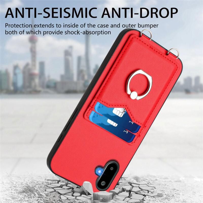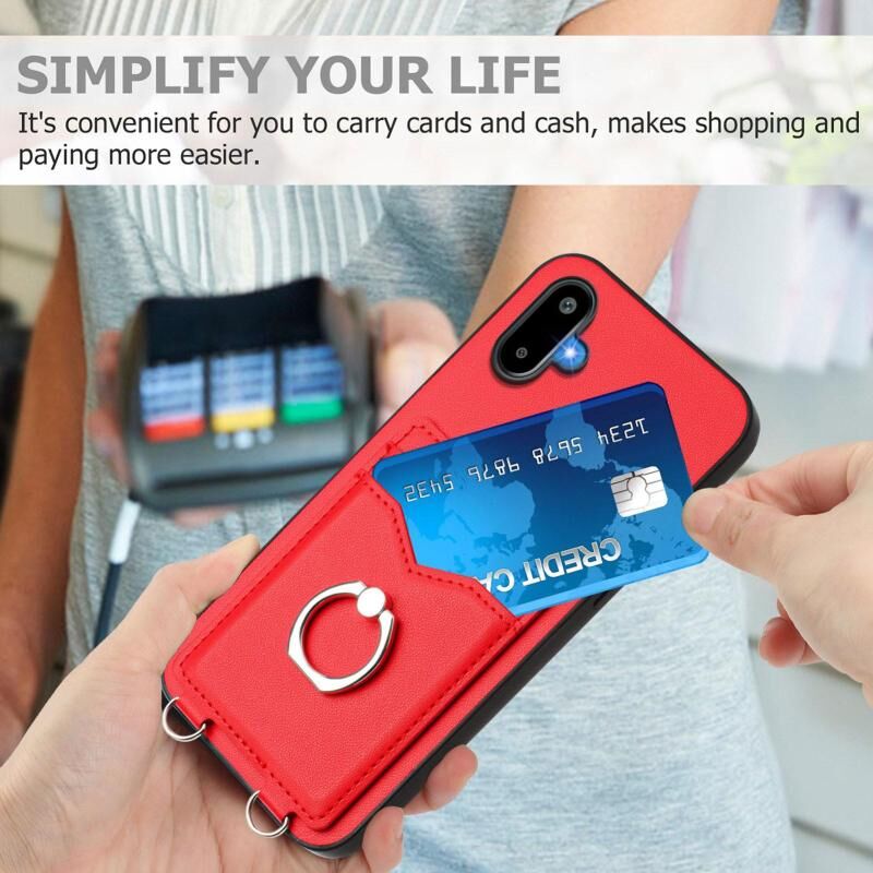 Θήκη κινητού τηλεφώνου με δακτύλιο και κάρτα για Samsung Galaxy M06 5G / F06 5G R20 (Κόκκινο)