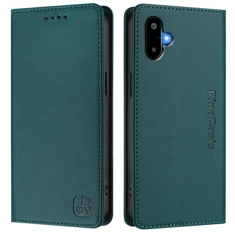 For Samsung Galaxy M06 5G / F06 5G RC01 Dual-Folded Magnetic Suction RFID Leather Phone Case(Dark Green)
