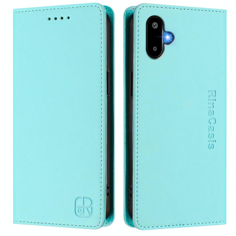 For Samsung Galaxy M06 5G / F06 5G RC01 Dual-Folded Magnetic Suction RFID Leather Phone Case(Mint Green)