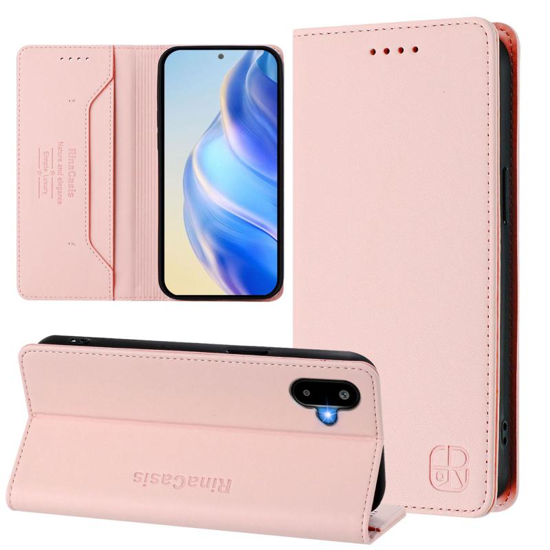 For Samsung Galaxy M06 5G / F06 5G RC01 Dual-Folded Magnetic Suction RFID Leather Phone Case(Pink)